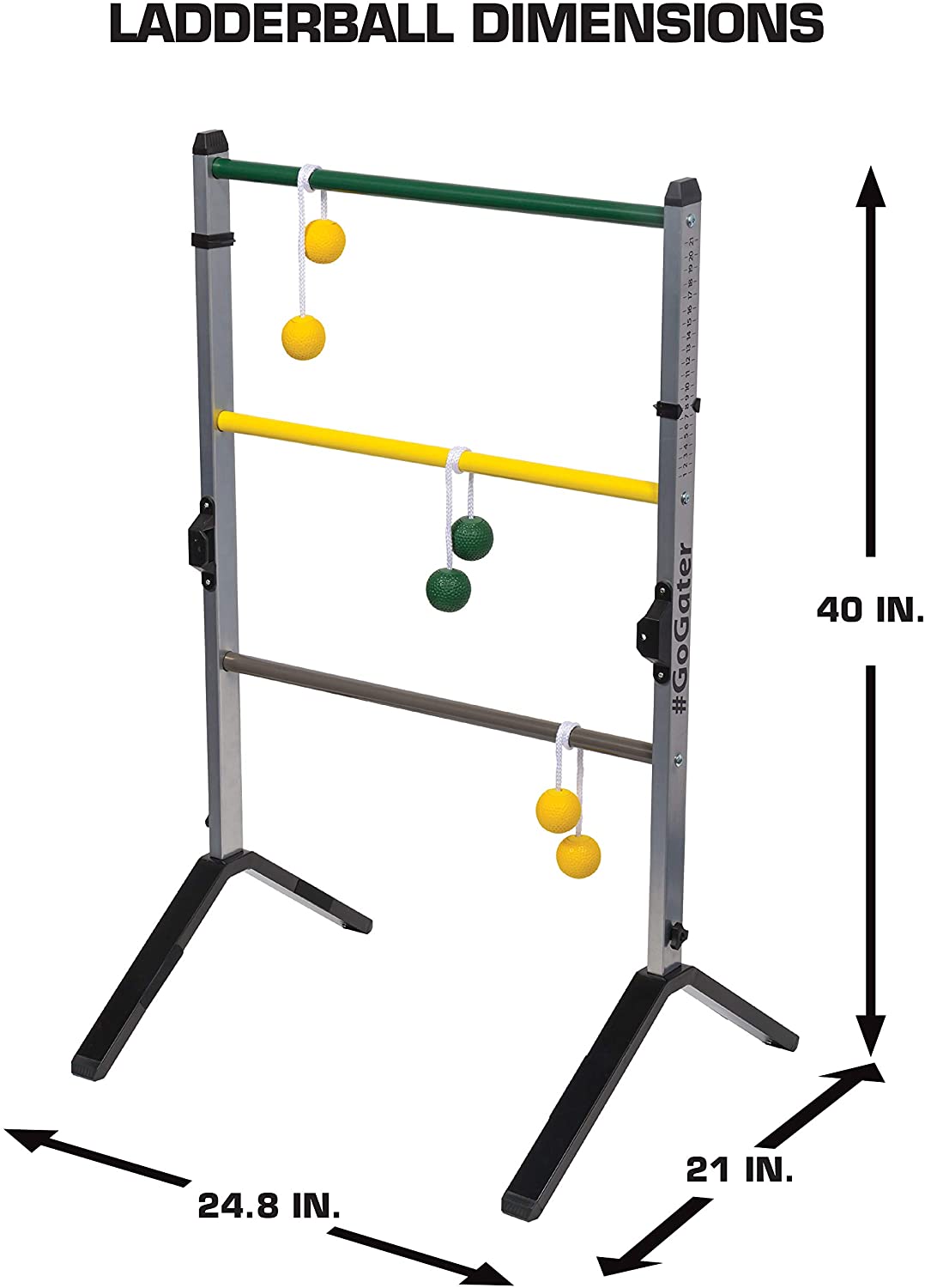 The Go! Gater Steel Ladderball Set is the premium edition of a classic, team-play outdoor game. Engineered with durable and portable design for lasting performance season after season. Easy to set up and take down, the portable construction enables you to bring your ladderball game to every barbeque and party. Never lose track of who's winning with the built-in scoring slider! So grab your family and friends, and relax with some competitive play that's perfect for all ages and skill sets.