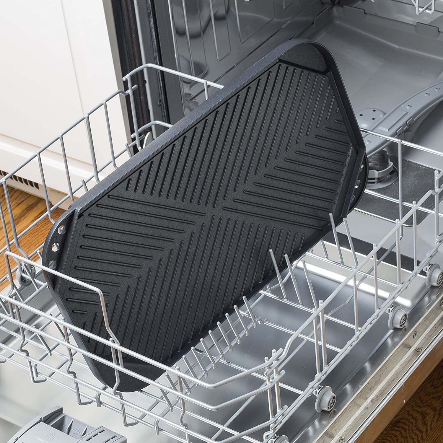 • Ridged side to grill and sear steak, burgers, and vegetables. Flat side for breakfast favorites, sandwiches and more