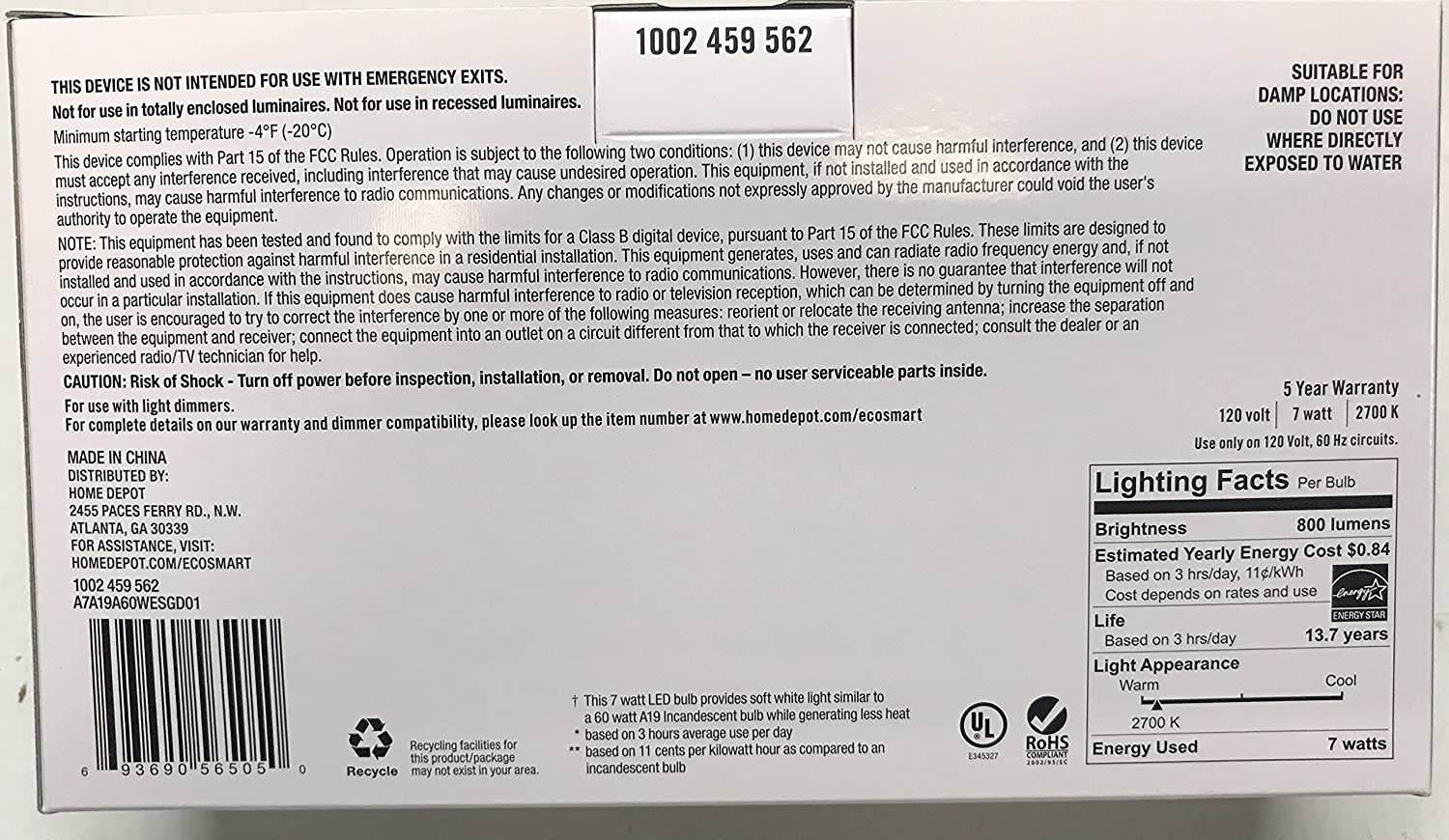 Ecosmart 60W LED soft white Vintage A19 (60)