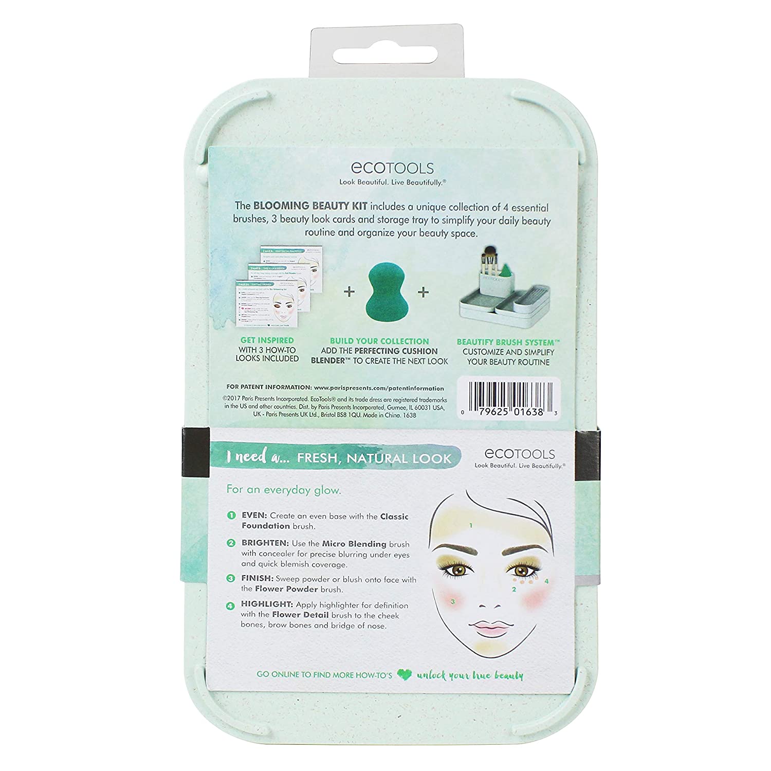 The Blooming Beauty Kit is designed with 4 essential brushes, 3 beauty look cards and storage tray for a fresh, natural look