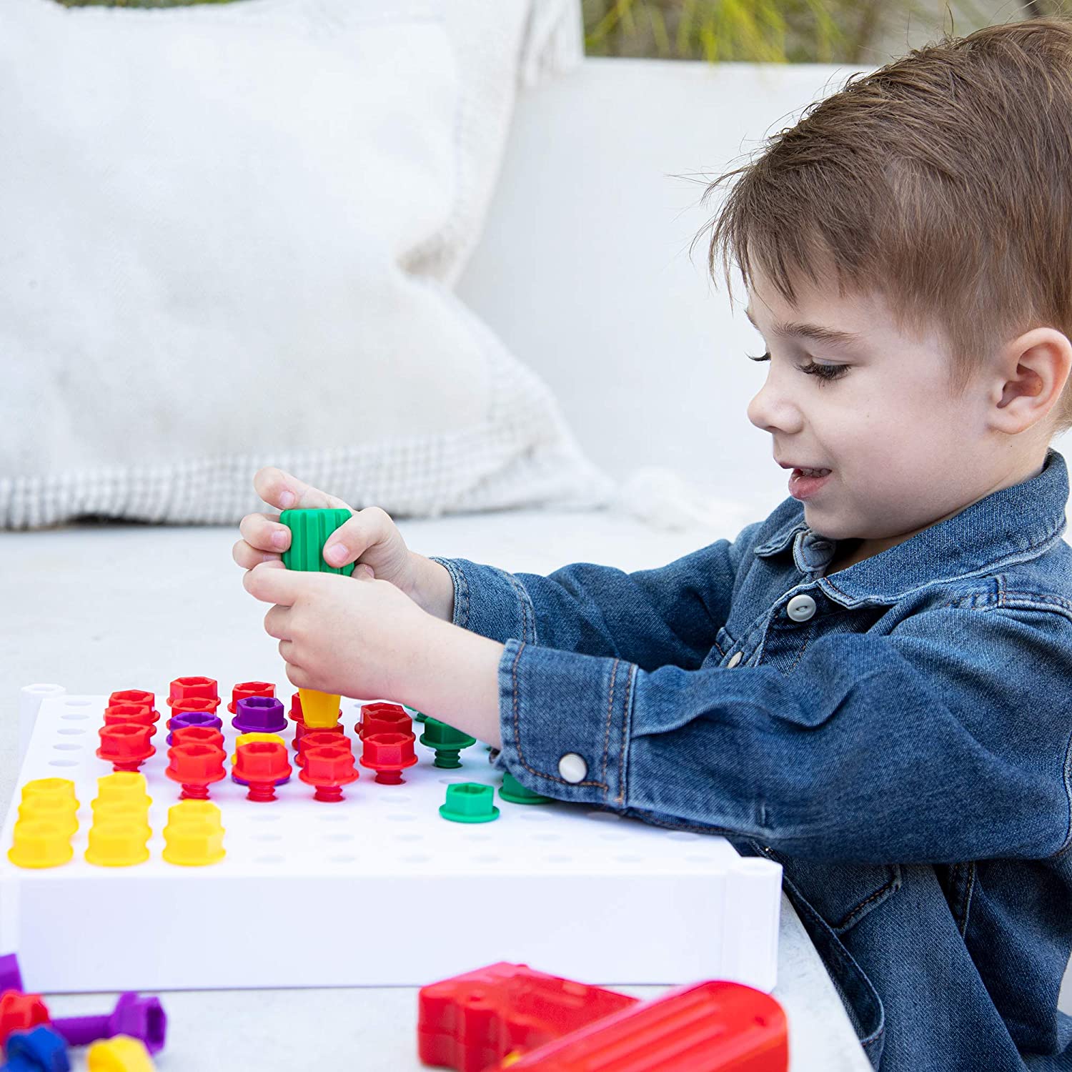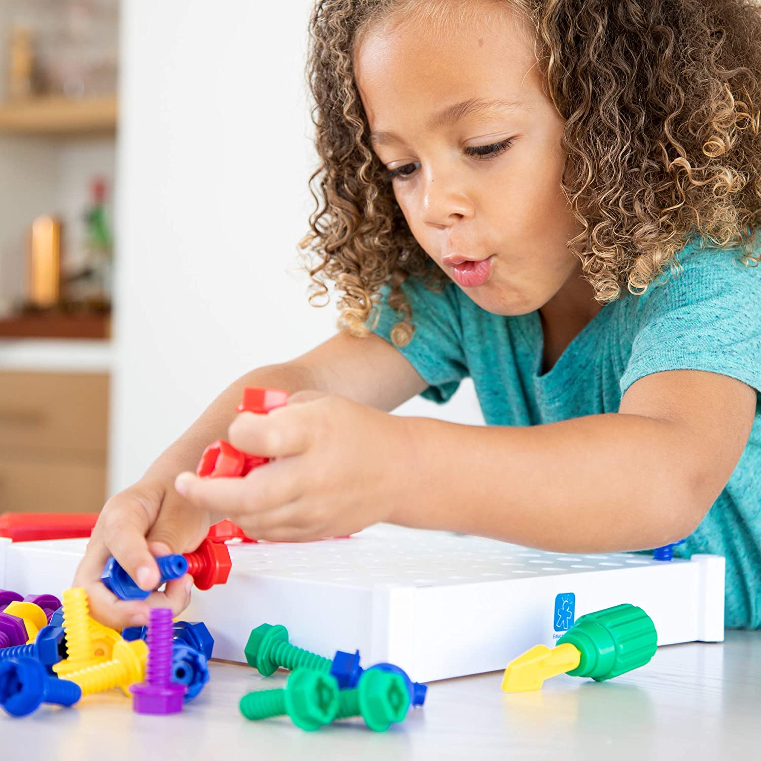 • LET'S GET BUILDING! Kids power up their imaginations and build coordination skills as they drill & play with a toy drill, and chunky, kid-sized bolts onto a sturdy activity board