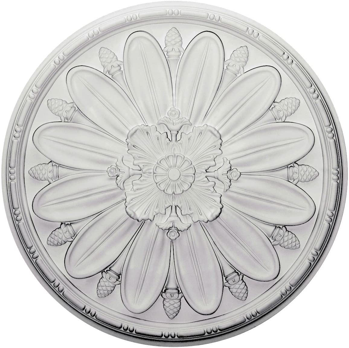 Our ceiling medallion collections are modeled after original historical patterns and designs. Our artisans then hand carve an original piece. Being hand carved each piece is richly detailed with deep relief, sharp lines and a truly unique touch. That master piece is then used to create a mold master. Once the mold master is created we use our high density urethane foam to form each medallion. The finished look is a beautifully detailed, light weight, solid construction, focal piece. The resemblance to original plaster medallions is achieved only by using our high density urethane and not vacuum formed, "plastic" type medallions. Medallions can be cut using standard woodworking tools to add a hole for electrical or a ceiling fan canopy. Medallions are light weight for easy installation. They are fully primed and ready for your paint. If you have any questions feel free to ask. These are in stock and available for immediate shipment.