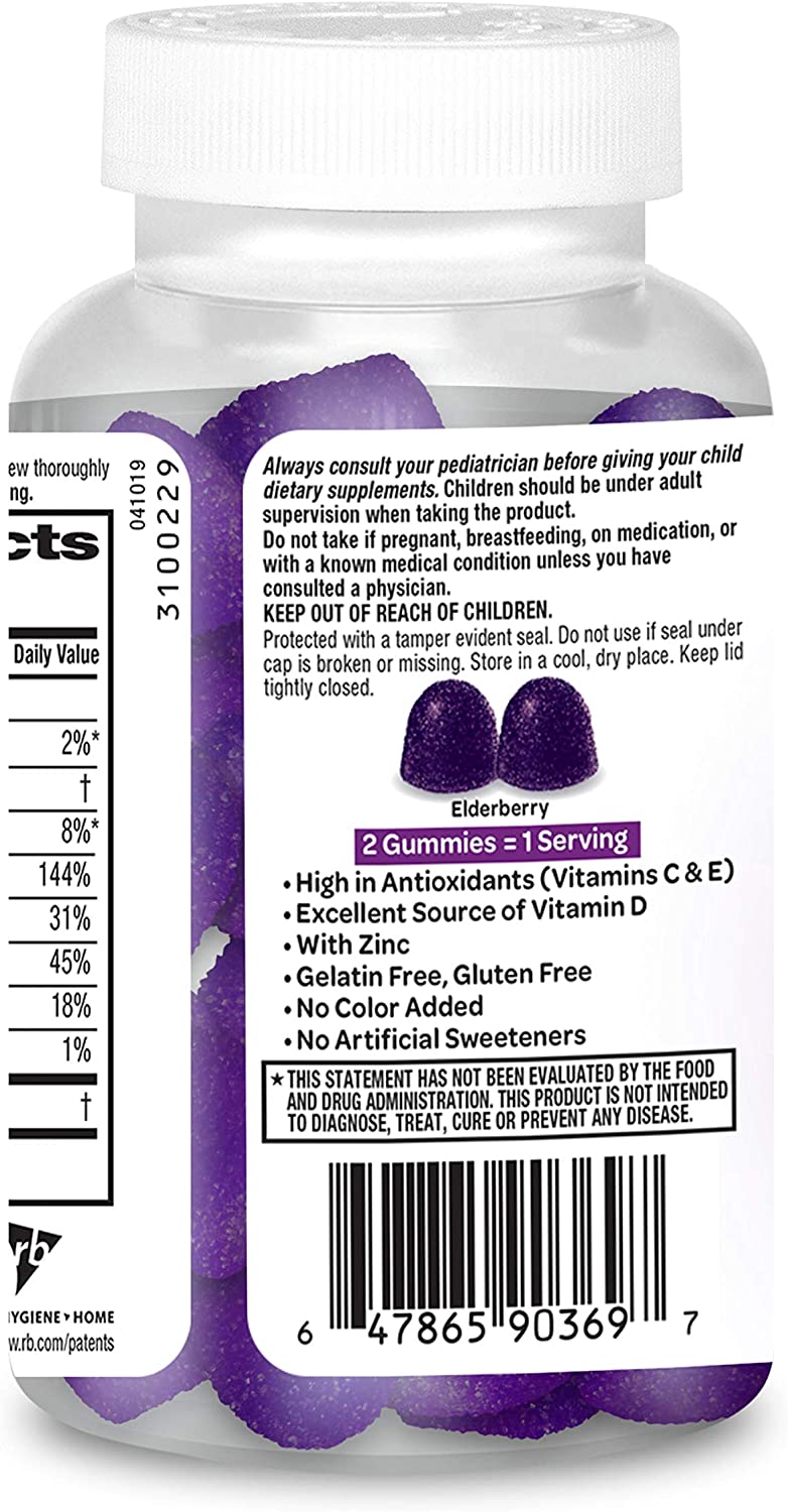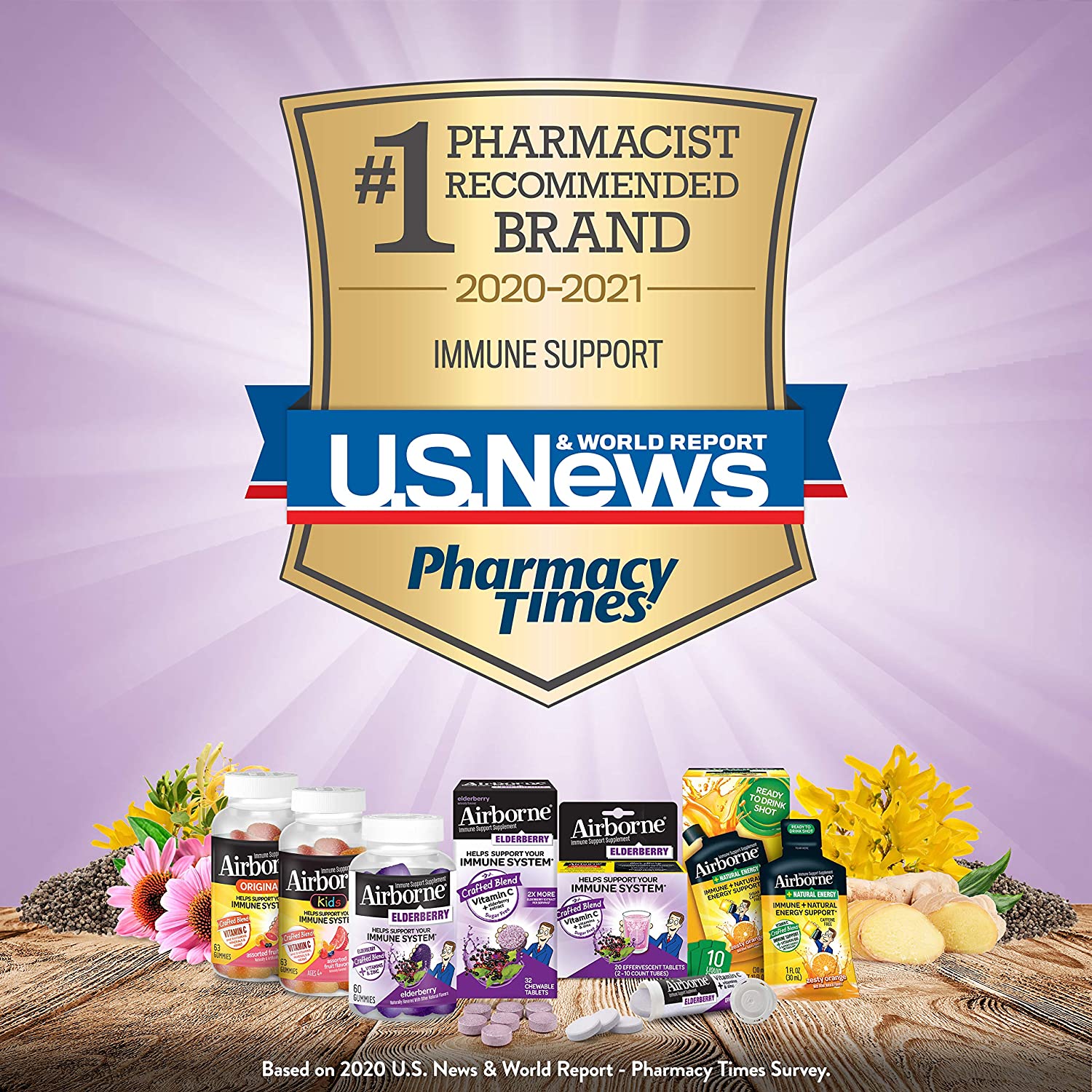 Elderberry 300mg (per serving) + Vitamin C & Zinc - Airborne Gummies (60 Count in a Bottle), Gluten-Free Immune Support Supplement With Vitamins C, D & E, No Artificial Sweeteners & No Color Added