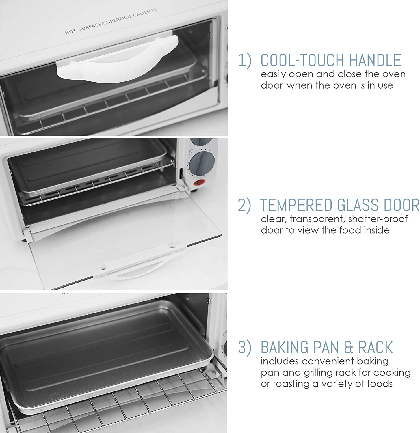 - Bake, broil and toast settings