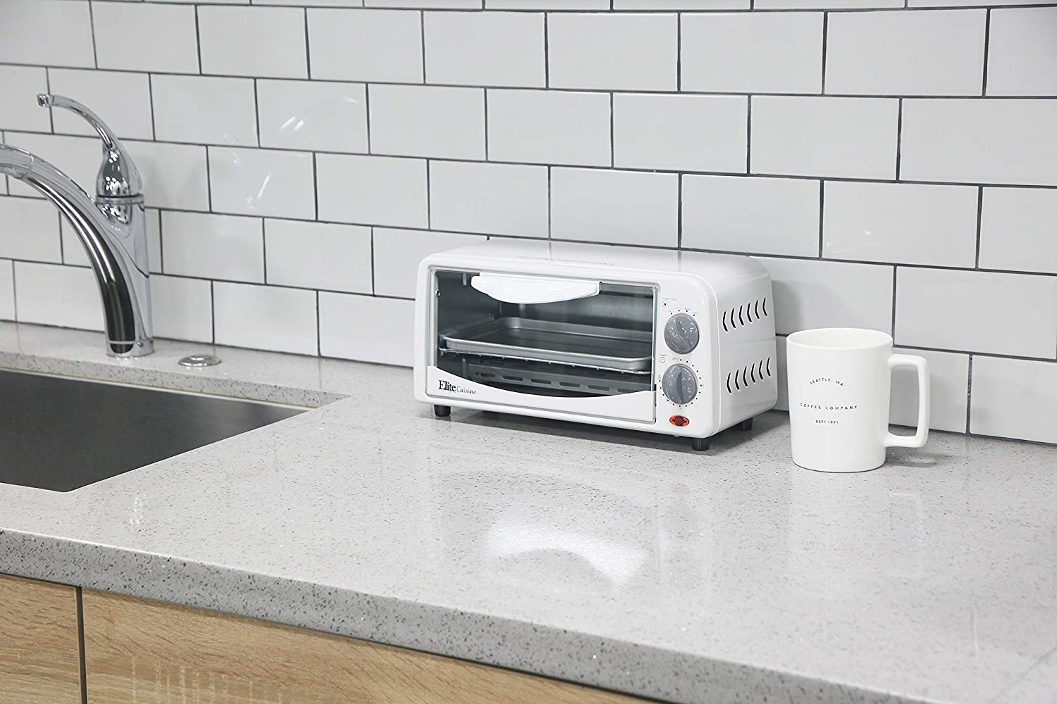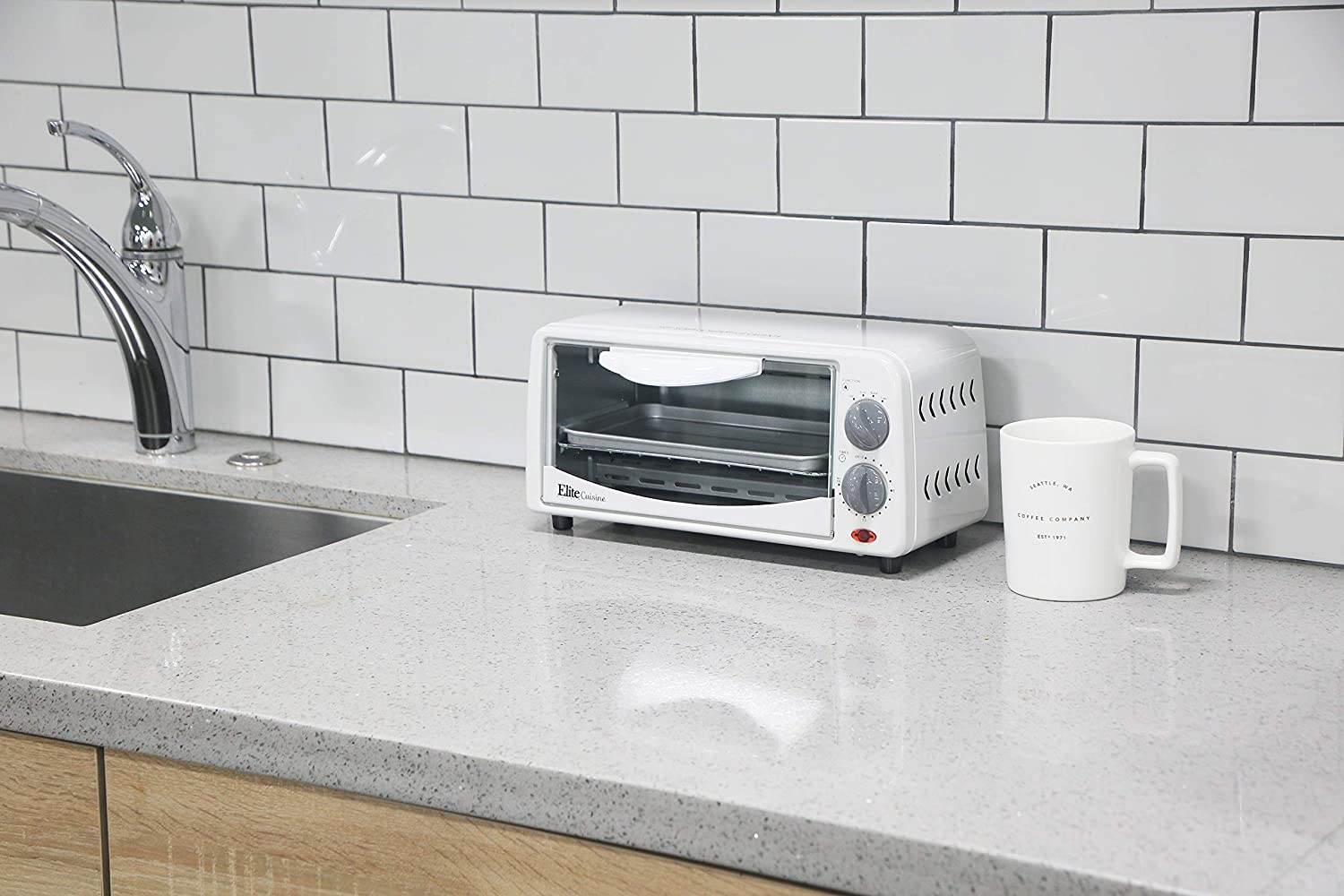 Stay toasty with the Elite Cuisine 2-Slice Toaster Oven. Toast bagels and bread, bake a personal pizza, or broil an open-faced sandwich. With an adjustable timer and heat selector functions, cooking is fast and easy. With its compact design, cleanup and storage is simple and hassle-free. The attractive white finish makes this toaster oven the perfect addition to any kitchen.