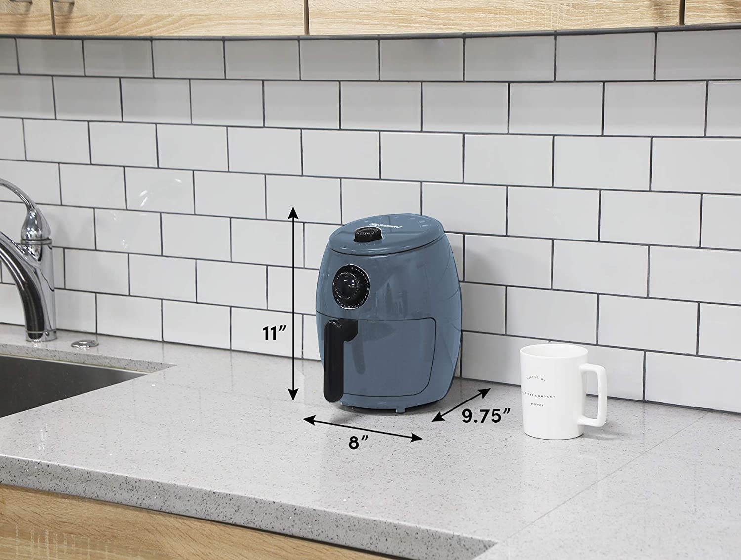• COMPACT SIZE: The PFOA/PTFE free non-stick pan and rack hold 2.1Qt or up to 1.5lb of food Perfect for personal use or when cooking for a few. Cook faster and more safely than in oil, eliminating splatter burns and reducing electricity use.