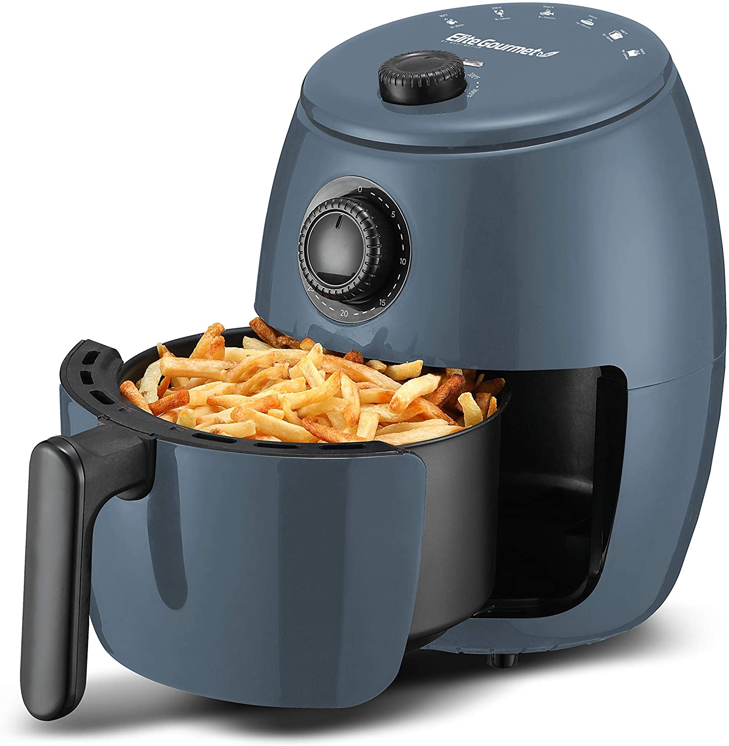 Elite Gourmet EAF-0201 Personal Compact Space Saving Electric Hot Air Fryer Oil-Less Healthy Cooker, Timer & Temperature Controls, PFOA/PTFE Free, 1000-Watts with Recipes, 2.1 Quart, Black