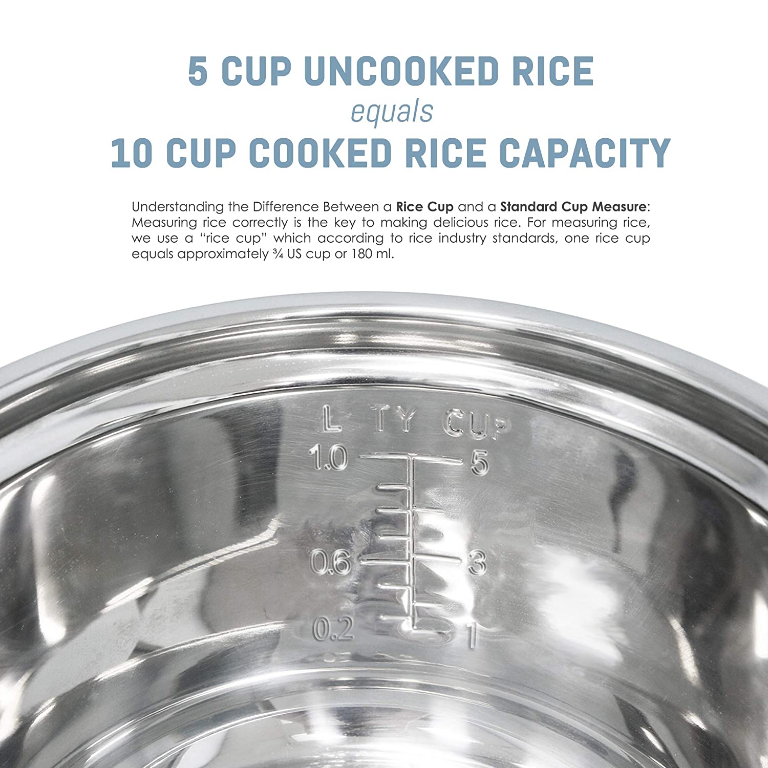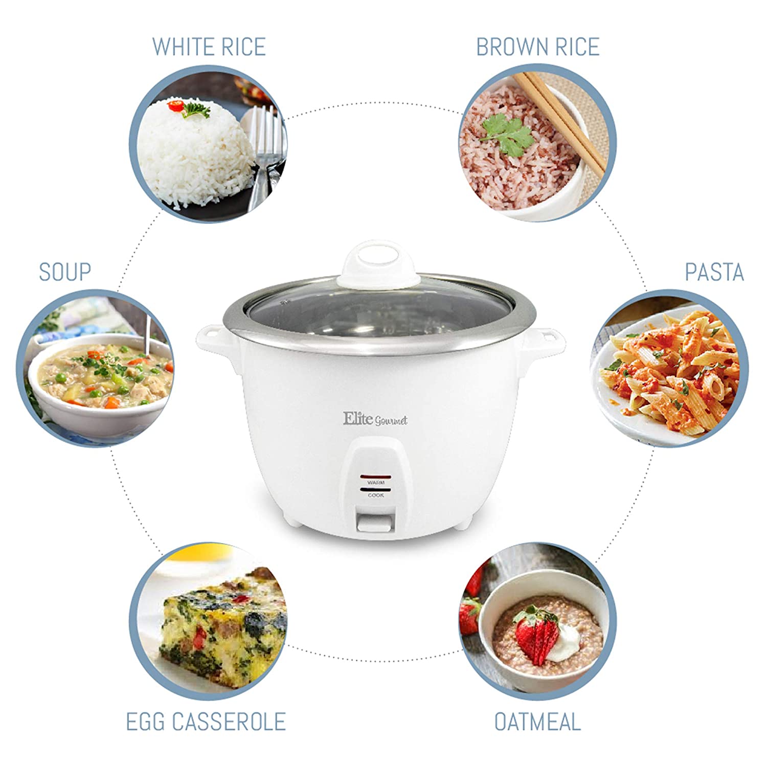 Elite Gourmet ERC-2010 Electric Rice Cooker with Stainless Steel Inner Pot Makes Soups, Stews, Grains, Cereals, 10 Cooked (5 Cups Uncooked), Cup Cups), White