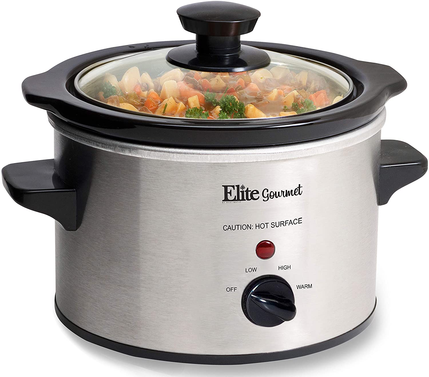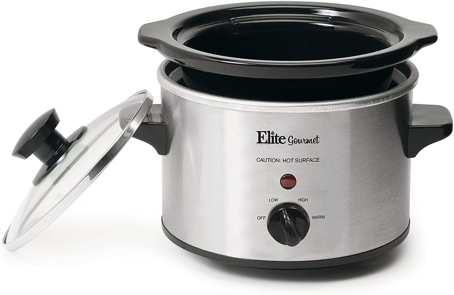 The Elite Gourmet 1.5 Qt. Mini Slow Cooker is perfect for cooking and serving small one-pot meals and appetizers such as soups, stews, meatballs, dips, and sauces. It's a great kickoff for a fondue party or where everyone prepares their favorite dip in their 1.5 Qt. Mini Slow Cooker. This versatile small appliance can be a single person's best companion as well as the all-star at your next Super Bowl party. It features low and high temperature settings, a keep-warm setting allowing you to keep your meal hot and fresh before it’s served, and an attractive stainless steel finish. It includes a removable inner stoneware pot that’s easy to clean, with a tempered glass lid with metal rim for easy viewing of cooking cycle and cool-touch handles and knob for safe handling.