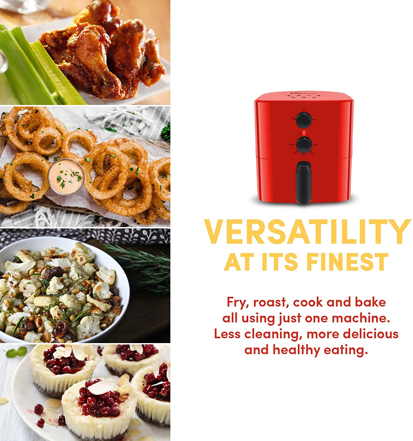 - COMPACT SIZE: The PFOA/PTFE free Non-Stick pan and rack hold 1Qt or up to 3/4 lb of food Perfect for personal use or when cooking for a few. Cook faster and more safely than in oil, eliminating splatter burns and reducing electricity use.
