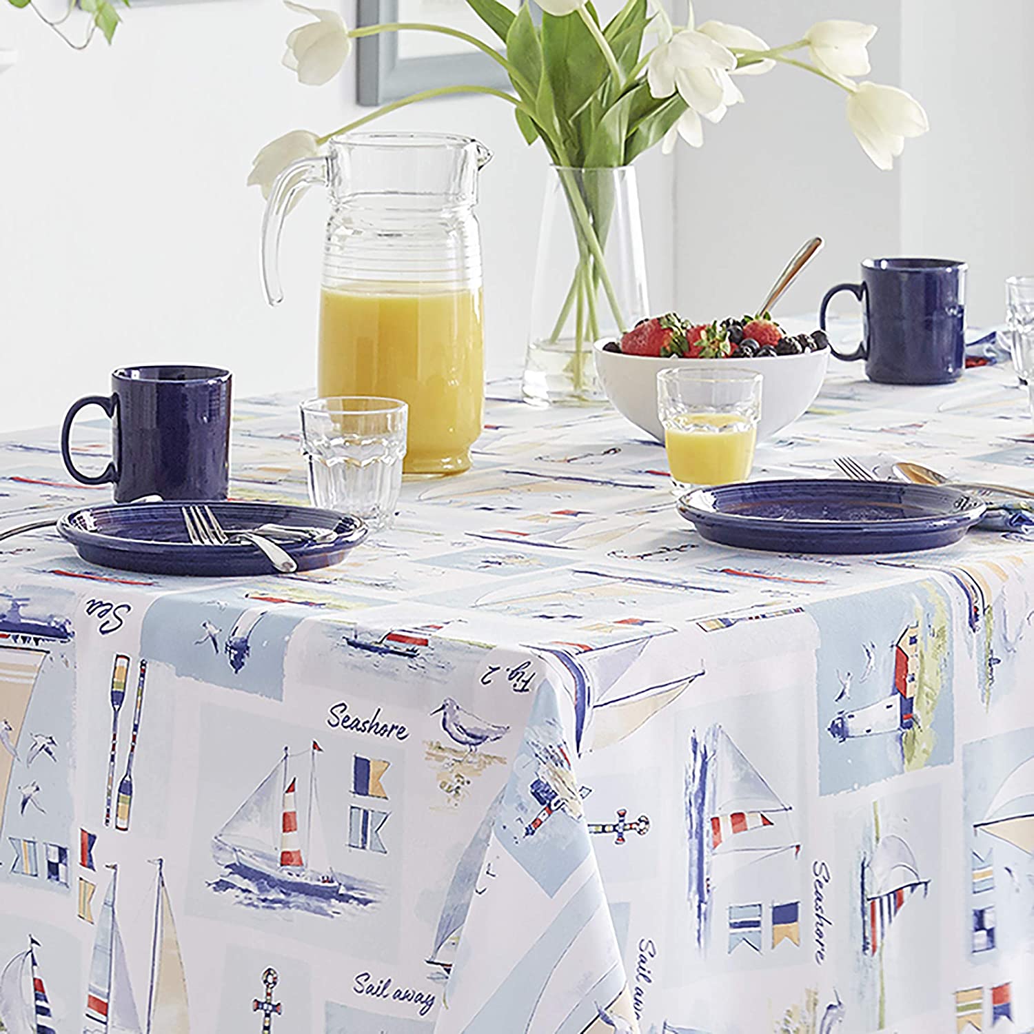 • Fashion and Function: Watercolor sailboat and nautical print tablecloth is water and stain repellent, mold and mildew resistant, and fade resistant.