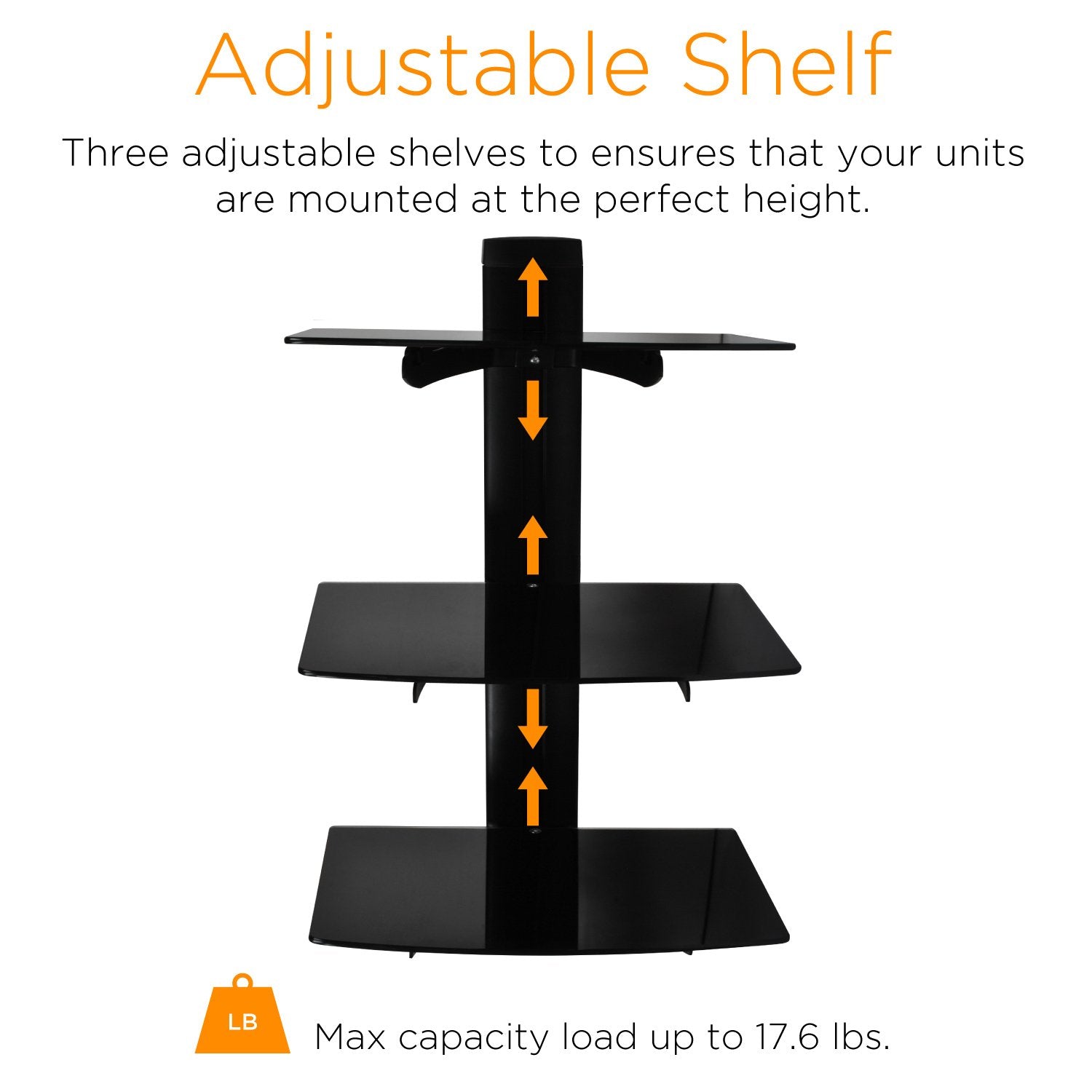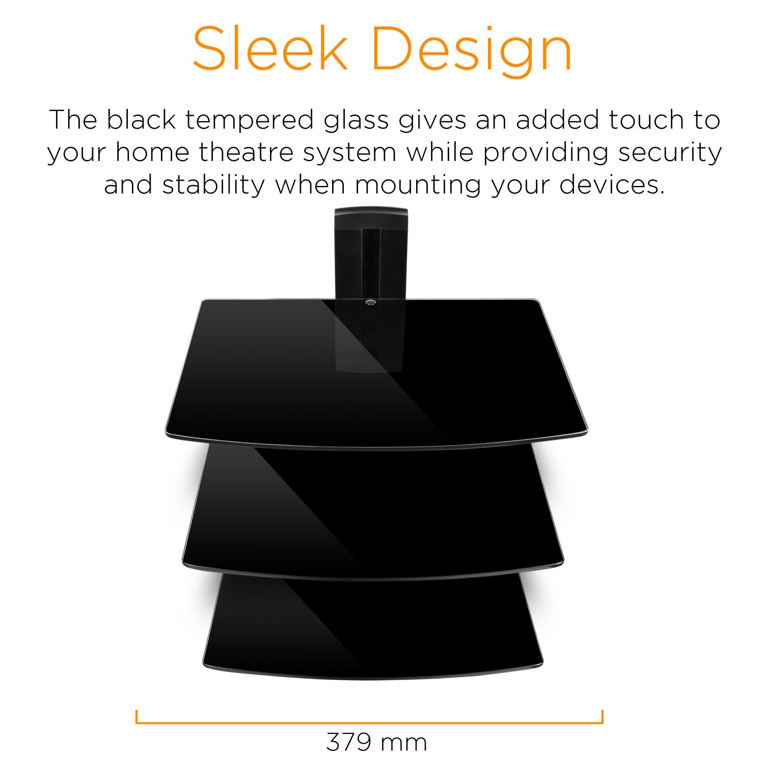 • 5mm black tempered glass shelf that can bear a load of up to 17.6 pounds