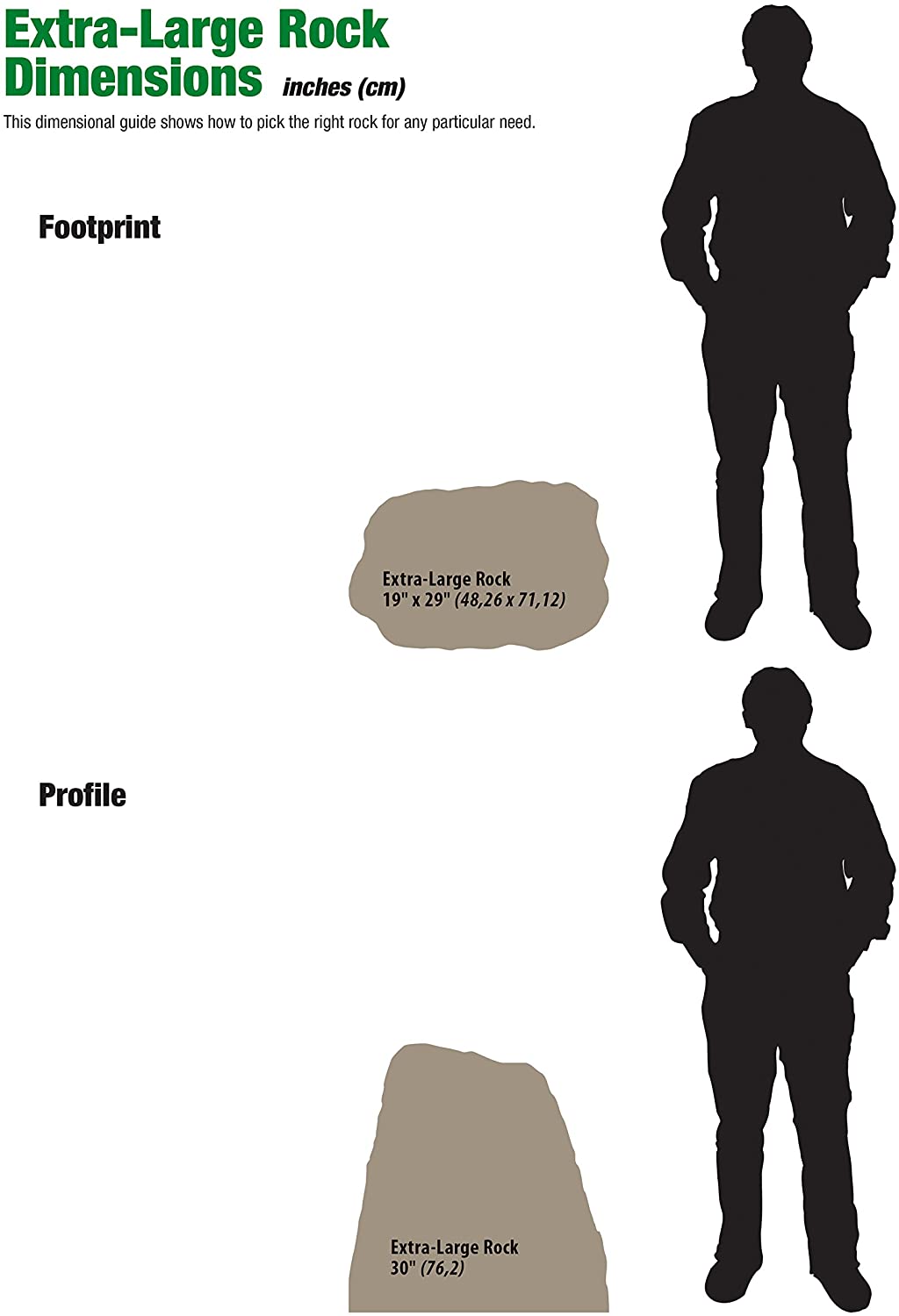 - SEE ROCK DIMENSIONS PHOTO FOR BEST SIZE OPTION – The rock's overall dimensions are of 29.75” x 29” x 19.5” (height x length x width). Please keep in mind that the rocks have an irregular shape and are tapered. To determine the best size for your application, please review the rock dimensions photo showing variations in both height and overall footprint.