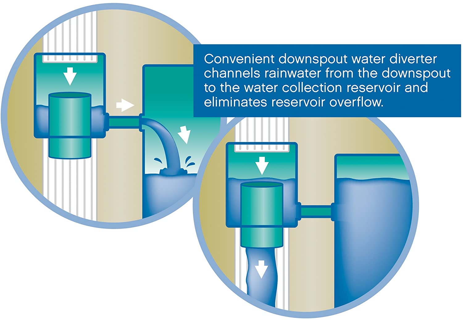 - INCLUDES RAIN WATER DIVERTER SYSTEM – The included diverter allows you to discretely divert rain water directly from your downspout to your rain barrel. There’s no longer a need to ruin the aesthetics of your garden by diverting through the top of the rain barrel! Each rain barrel comes with an easy to read diverter installation guide for a hassle free set up.