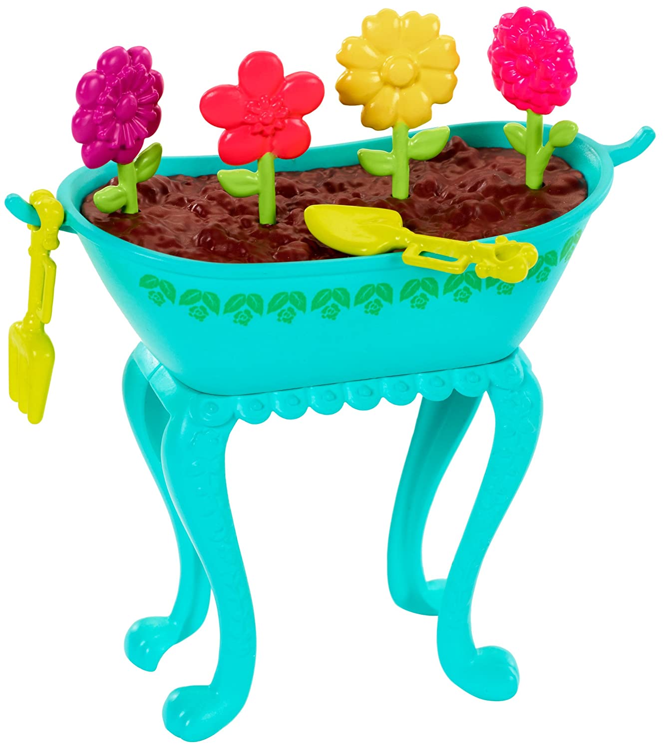 Get wild with this Enchantimals gardening-themed gift set that lets imagination grow! It comes with two six-inch Enchantimals dolls -- Fluffy Bunny doll and Danessa Deer doll -- Sprint deer, Mop bunny, a flower plot with flowers and themed accessories. Each piece is enchanting, especially the blue flower plot that has four removable flowers and a hook on each end that can hold the two gardening tools. A pink flower basket and bunny-shaped watering can help imaginations grow even more. Kids will love helping the Enchantimals friends grow a colorful garden and playing out their unique stories. Both Enchantimals dolls wear colorful outfits with removable skirts that have floral prints. Bree Bunny doll, with bright teal hair, accessorizes with pink shoes, a white furry stole and gardening hat that lets her rabbit ears poke through. Danessa Deer doll is a-doe-able with purple boots, a white furry stole and a sunhat that showcases her golden antlers and purple hair. Her deer bestie, Sprint, matches with golden antlers and a white furry neck of his own. Mop bunny figure is sweet with a patch of furry white hair and a look ready to hop wherever imagination leads. Kids will love recreating the wonder of nature and celebrating a world where Caring Is Our Everything. Collect all of the Enchantimals dolls and accessories to build out a world of Enchantimals and tell enchanting stories of your own (each sold separately, subject to availability). Includes Danessa Deer doll and Bree Bunny doll wearing fashions and accessories, Sprint deer figure, Mop bunny figure, one gardening plot, four flowers, one flower basket and one watering can. Colors and decorations may vary.