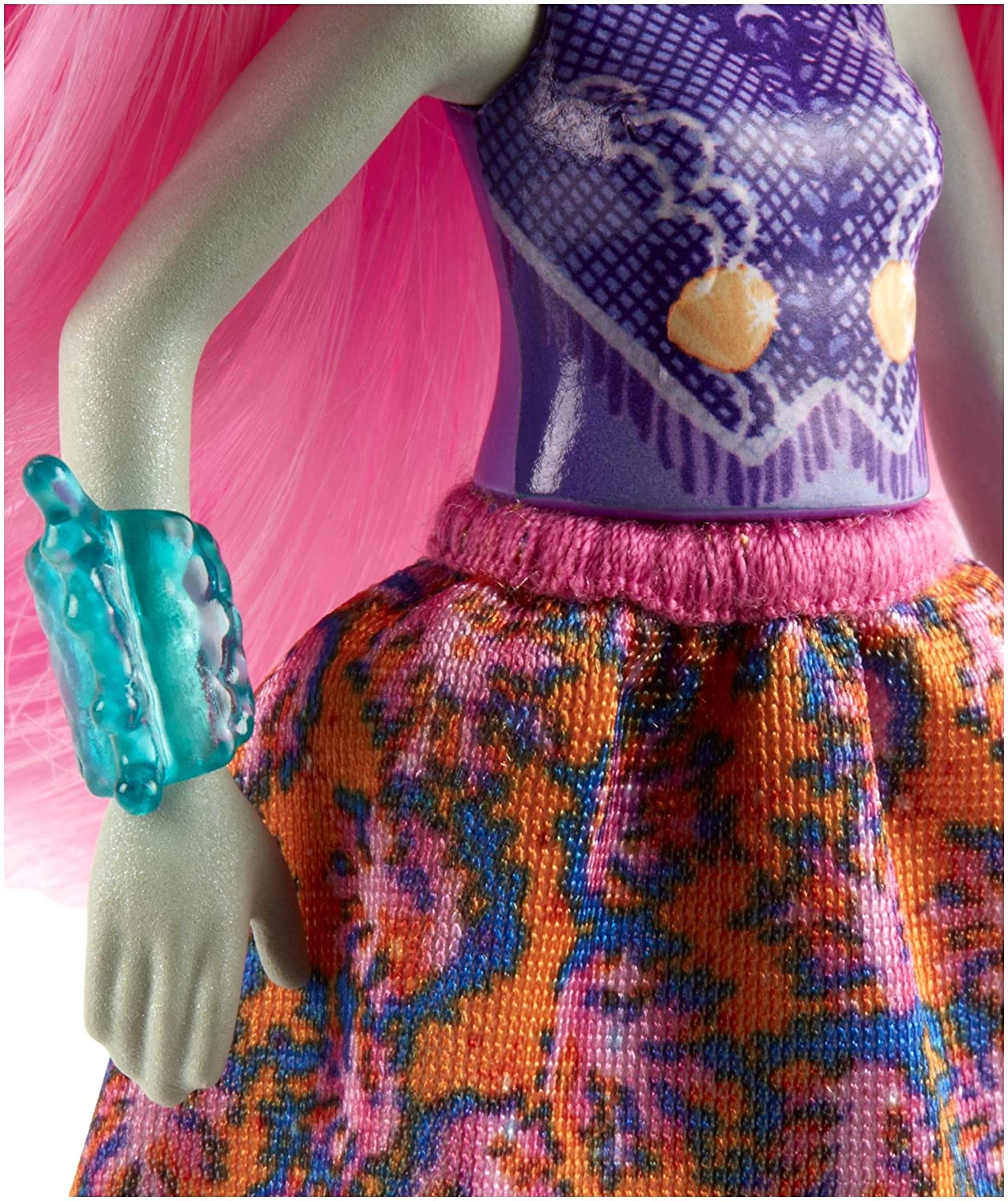 - Scandella Seahorse doll wears a unique and colorful outfit: the purple and white bodice has a seahorse-inspired design