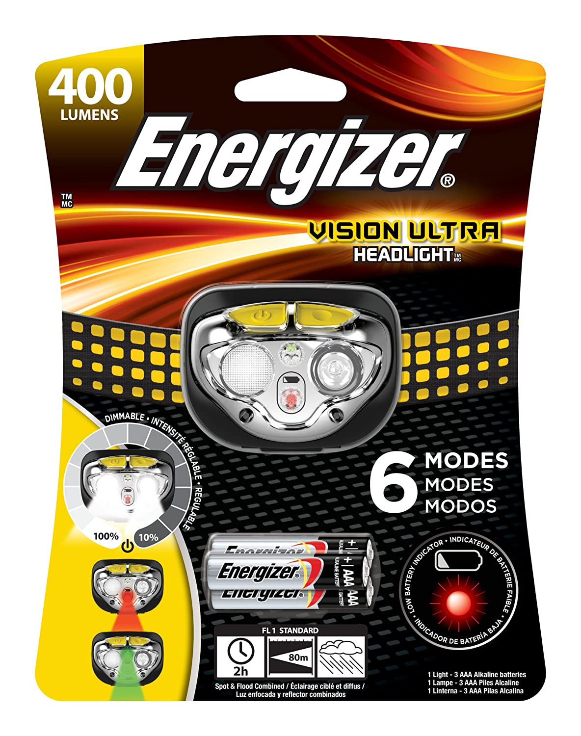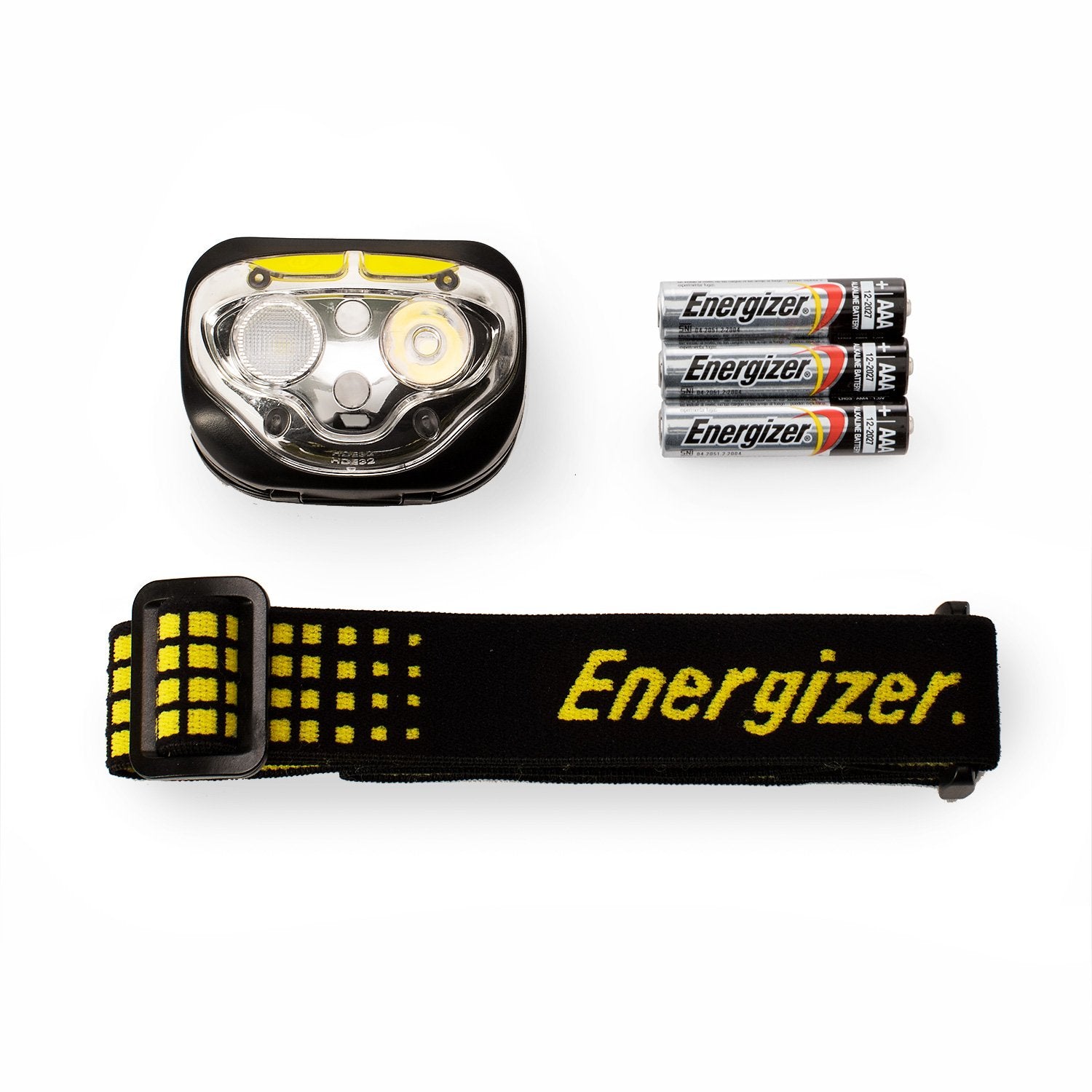 Energizer vision ultra HD LED headlamp runs on 3 Energizer max AAA batteries (included)