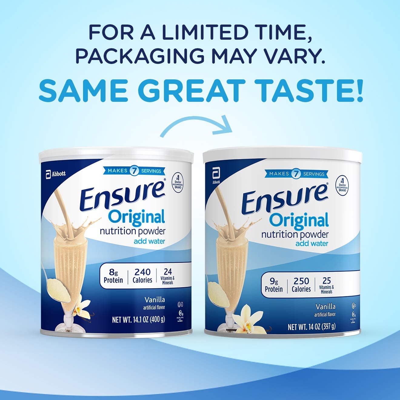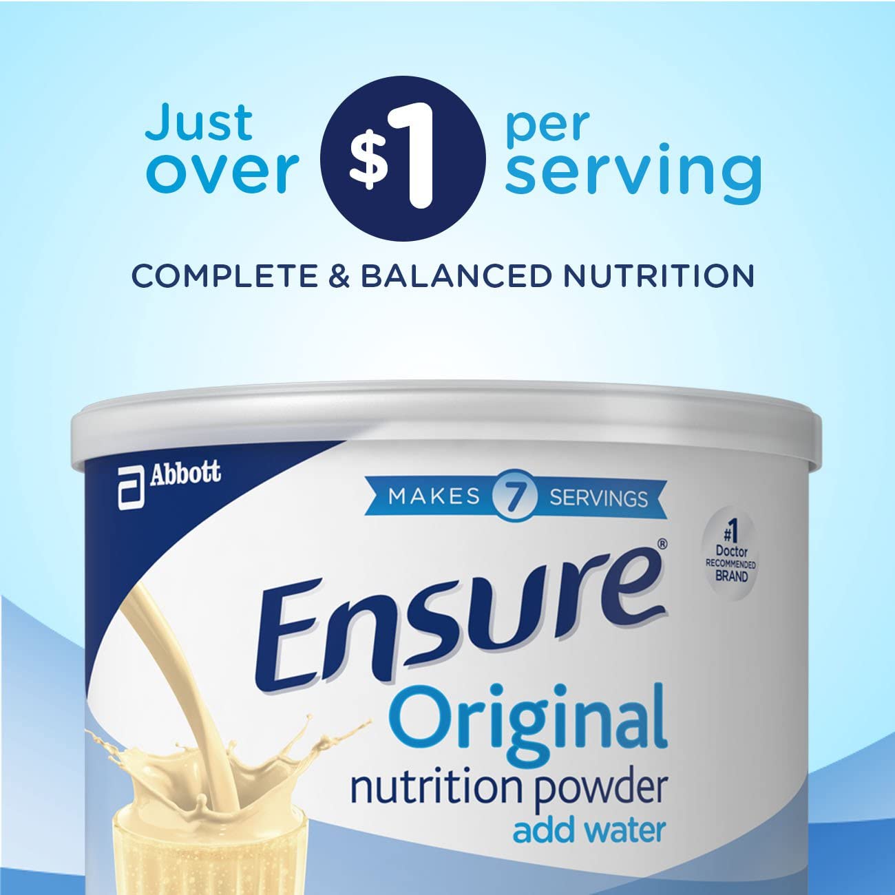 From the #1 doctor-recommended brand, Ensure Original Nutrition Powder provides complete and balanced nutrition. The convenient powder form makes it easy to mix with your favorite foods and water, and it’s easy to store. Each serving has 9 grams of protein and 25 essential vitamins and minerals.