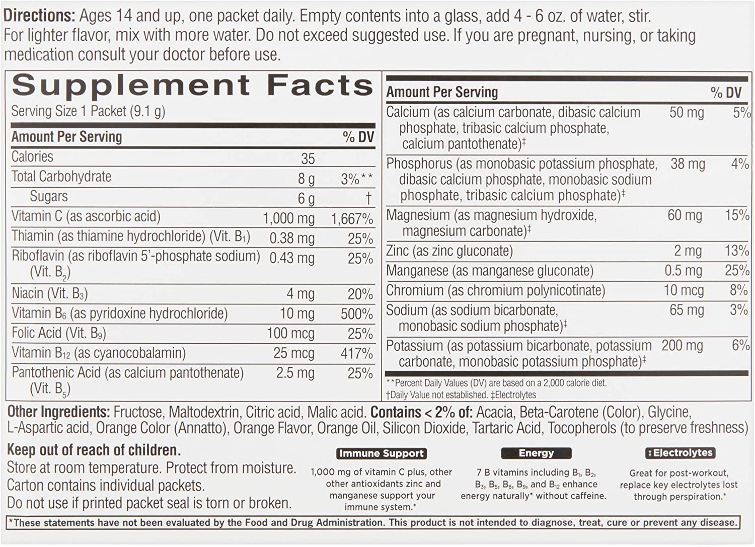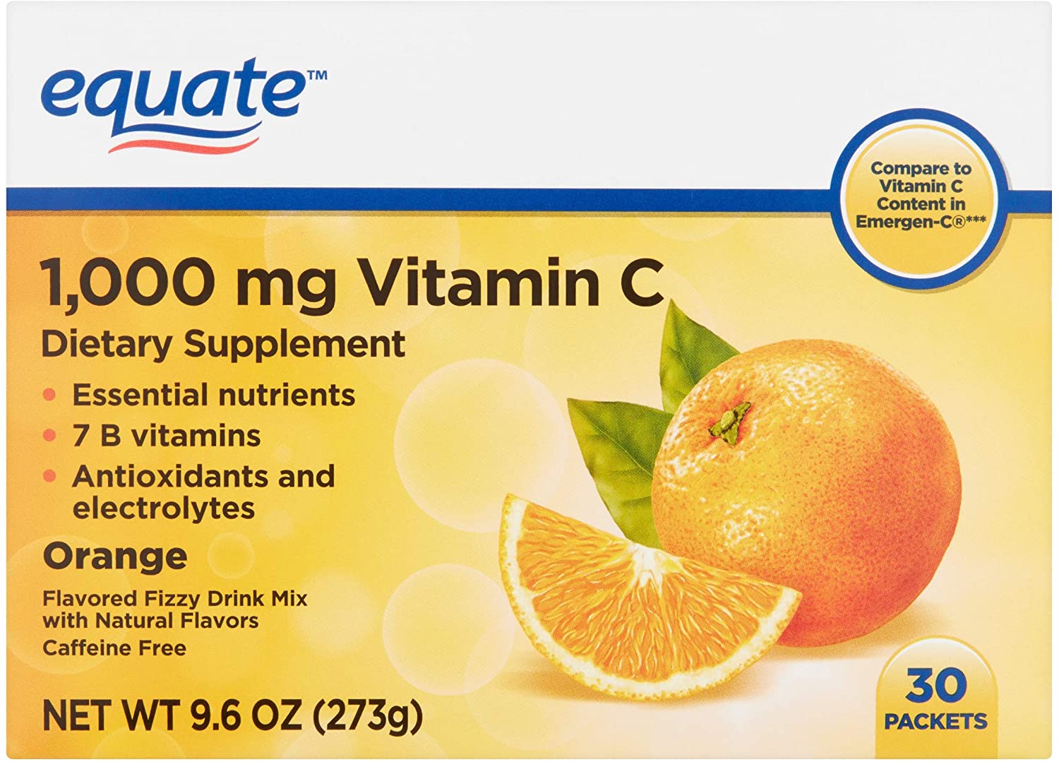 Equate Vitamin C Drink Mix, Orange, 1000mg, 30Ct