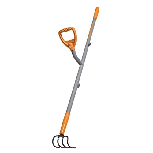 Ergieshovel ERG-CLTV45 4 Tine Garden Soil w/54 Shaft, 5 in 1 Piece Forged Steel Head Cultivator, Gray/Orange
