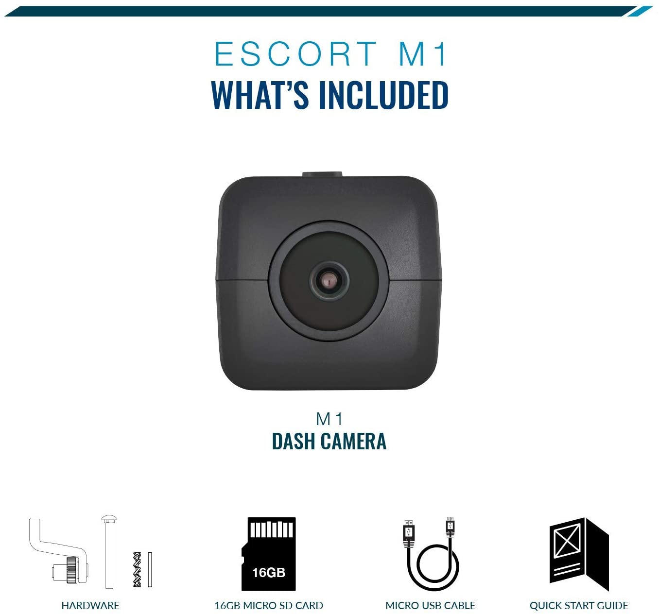 Escort M1 Dash Camera - 1080p Full HD Video Dash Cam, Loop Recording, G-Sensor, 16GB Micro SD Card Included, iPhone and Android Compatible
