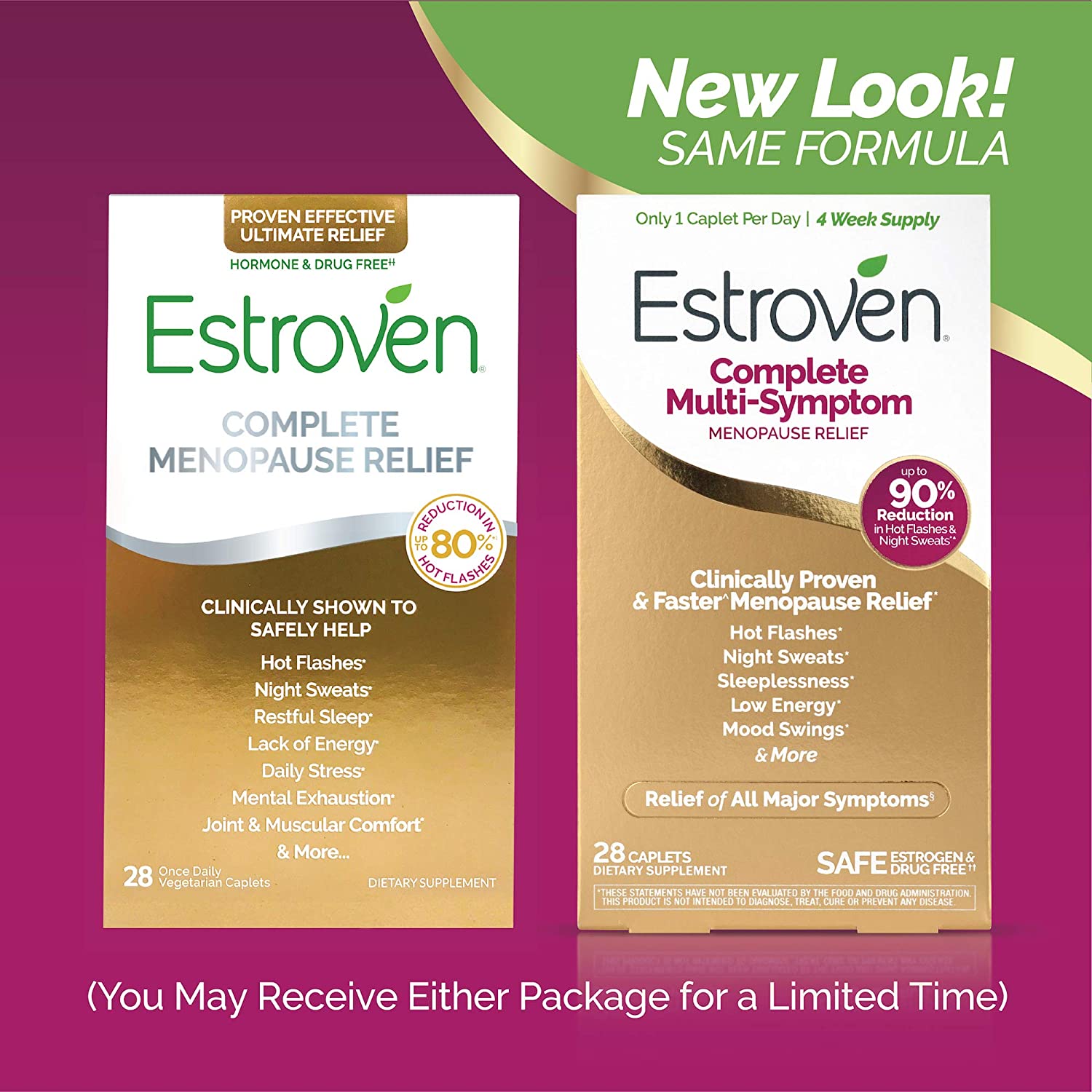 • CLINICALLY SHOWN TO RELIEVE MULTIPLE MENOPAUSE SYMPTOMS* - Estroven Complete Menopause Relief is clinically demonstrated to reduce total menopause symptoms by up to 60%*1. It is also clinically shown to reduce hot flashes by up to 80%*2