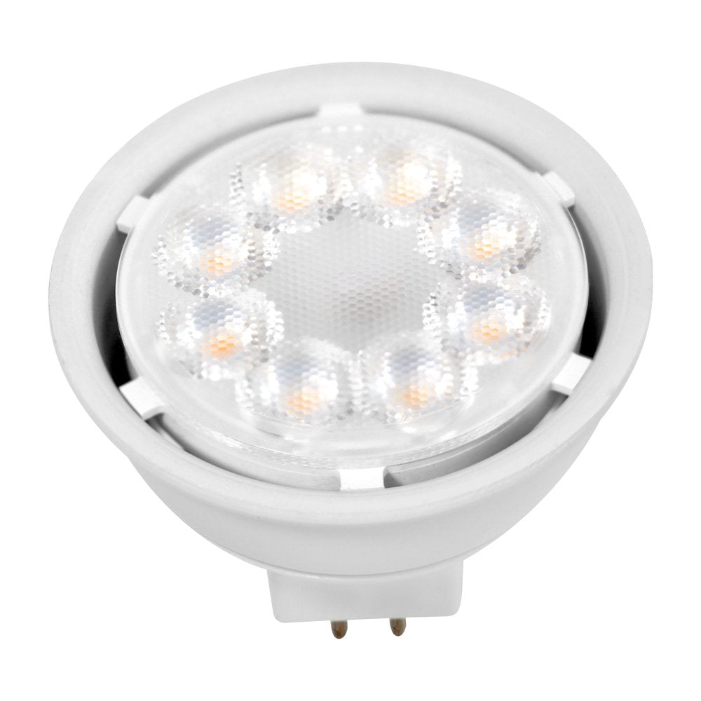 LED EM16-2020ew delivers superior brightness, valuable energy savings and long lasting performance. This flood MR16 LED bulb is ideal for accent lighting. Pleasant *Warm White light (2700K) guarantees welcoming lighting environments. (Also available in *Soft White (3000K) and *Cool White (5000K) correlated color temperatures.) Built-in MCOB LED Technology offers exceptional light uniformity, energy efficiency and optimal heat dissipation assuring durability and constant bulb performance. LED EM16-2020ew replaces conventional 50 Watt incandescent bulbs.
