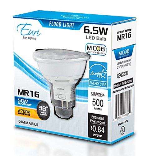 Euri Lighting LED Equivalent Lumens Dimmable Beam Angle, GU5.3 Base, UL & Energy Star Listed, Warm