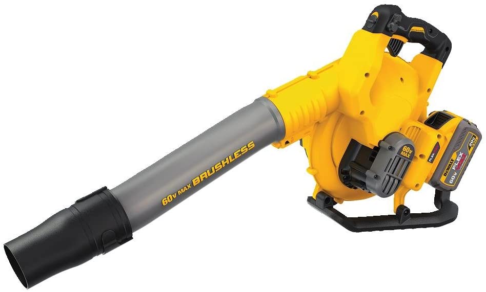 The FLEXVOLT 60V MAX* Handheld Blower powers through debris at 129 MPH. Battery powered leaf blower features a variable speed trigger and speed lock for total power control, and its lightweight and ergonomic design maximizes control and minimizes stress on your arms. This cordless leaf blower kit contains a FLEXVOLT 20V/60V MAX* 9.0Ah battery that powers 60V MAX* tools or it can be backwards compatible to work with 20V MAX* tools.