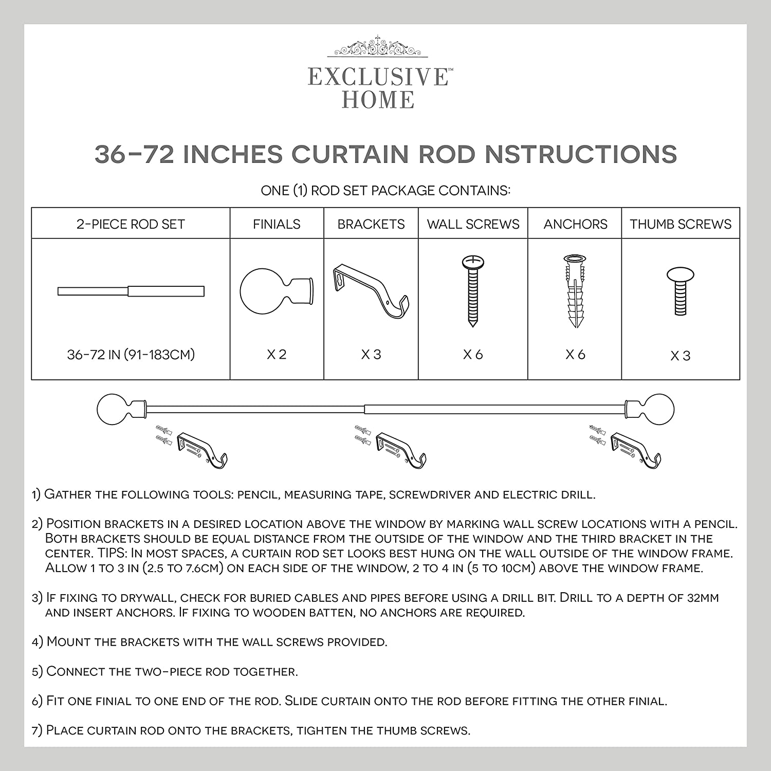 The Acorn decorative curtain rod and finial set features a classic style and traditional design with a matte finish iron rod and coordinating cast resin acorn finials. This set will provide a visually balanced appearance for your window treatments. The 2. 6" diameter x 3. 9" long finials will insure that your window curtain panels will remain securely on the rod. The 1" diameter iron adjustable curtain rod is designed to fit a wide range of window widths, and has a sturdy 25 lb. capacity that will support flowing sheers to thermal blackout panels. The 3. 5" fixed depth projection bracket provides a gracious amount of space for fabrics to drape perfectly. Accommodates window curtain panels and drapes that are designed with various tops, including: rod pocket, pinch pleat, clip rings, grommets, tab top, or hidden back tab top. Provides an attractive accent to every window treatment in your living room, bed room, bathroom, kitchen, and kids room. Installs easily with included hardware and installation instructions. Sturdy, easy clean, no fuss, wipe clean finish will last for lifetime. This window curtain rod and finial set will add the perfect finish accent to any window treatment and adds a refined style to your home decor.