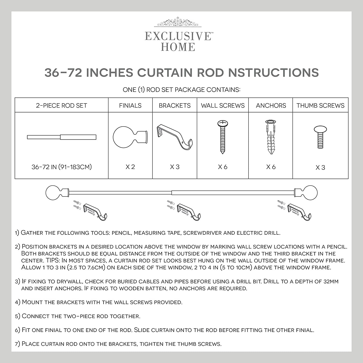 - SET INCLUDES: One (1) three-piece adjustable rod, two (2) finials,three (3) fixed 3.5" depth projection brackets, and installation hardware with instructions.