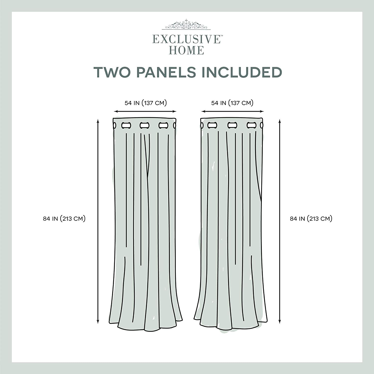 • Includes: Two (2) curtain panels, each measuring: 54"W x 84"L