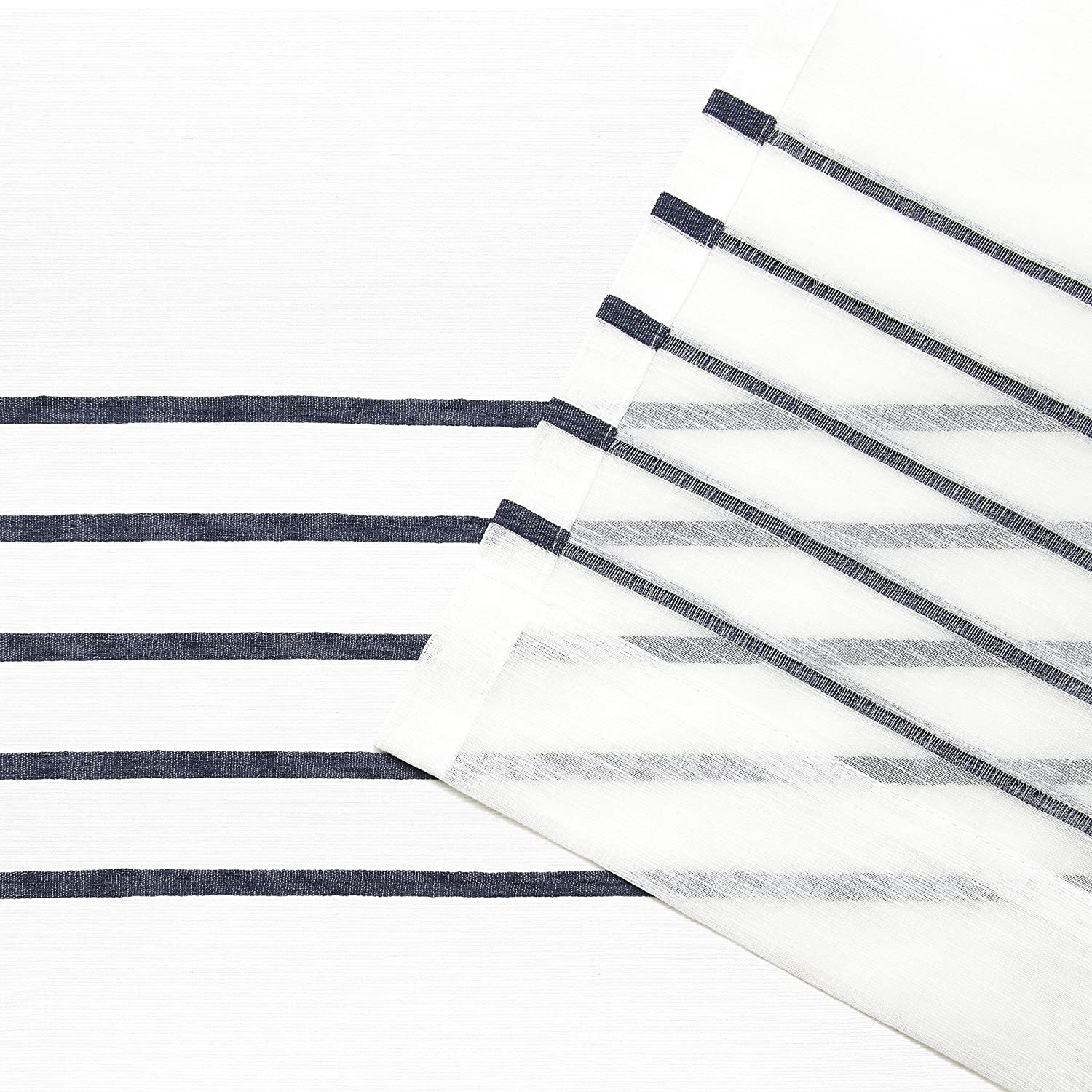 The Monet sheer pleated stripe rod pocket window curtain panels offer a beautiful cabana styled stripe that is sure to be the finishing touch on your favorite room. Whether hanging these pleated sheers layered with another panel or independently, these curtains are sure to complete your home decor project. The Monet drapery is constructed with a sewn in rod pocket and can be hung on your favorite curtain rod, adding yet another touch to the richness and luxury of your decor. These window curtain panels will drape beautifully from any window that could use that perfect, finishing touch. Our curtain panels are perfect for any living room, bedroom, family room, dining room, bathroom and office. Our stylish designs will suit any window space.