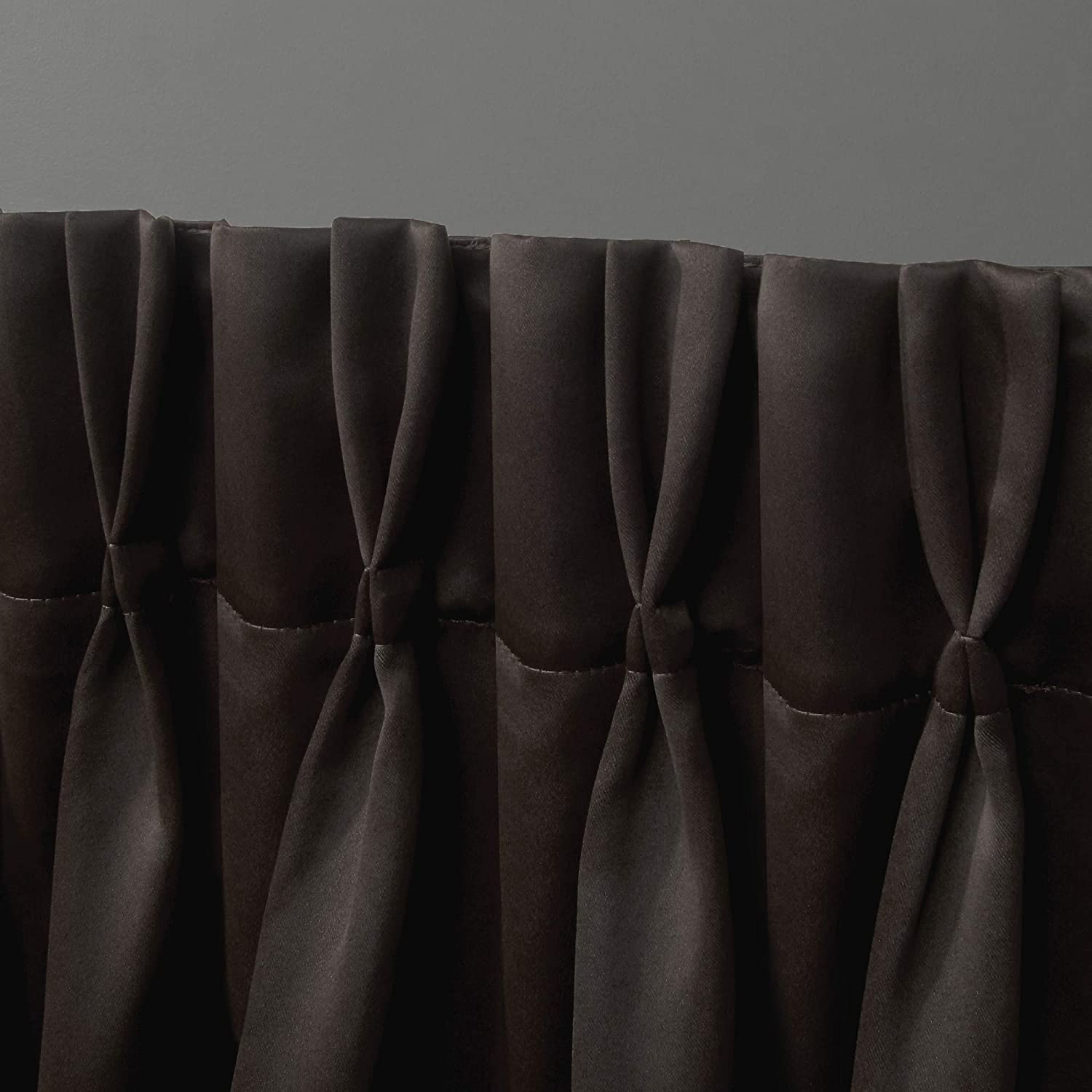 Sateen blackout pinch pleat top curtain panels bring a rich, luxurious look and ultra soft feel to any room. These panels are interwoven with blackout insulation provided by Light Block and Thermax technology. Designed to block light and preventing harmful UV rays from reaching your floors and furniture, these panels also prevent cold or heat transfer from the outside, increasing the energy efficiency of your home. The panels provide unparalleled privacy and allows you to create darkness any time of day, making them perfect for anyone seeking to block daylight, take a nap, or keep sun glare off your TV. Sateen panels are constructed with seven (7) hidden tabs, panels can be hung on your favorite curtain rod up to 1 5/8" dimeter leaving the pinch pleat top to add a touch to the finished look of your window decor. The 52" overall fabric width a the bottom of the panel adds fullness and provides a luxurious feel. Our curtain panels are perfect for any living room, bedroom, family room, dining room, bathroom and office. Our stylish designs will suit any window space.
