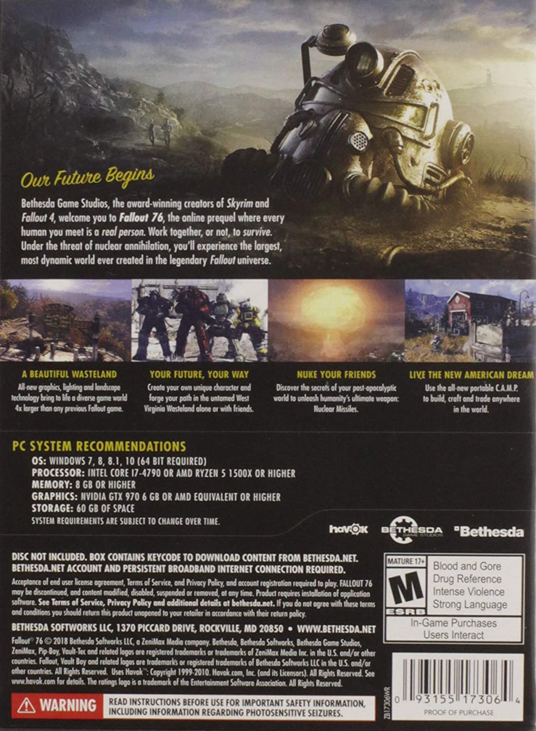 - Bethesda Game Studios, the award-winning creators of Skyrim and Fallout 4, welcome you to Fallout 76, the online prequel where every surviving human is a real person. Work together, or not, to survive. Under the threat of nuclear annihilation, you’ll experience the largest, most dynamic world ever created in the legendary Fallout universe