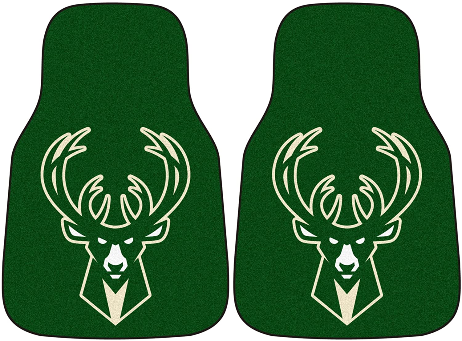 Fanmats Milwaukee Bucks NBA 2 Piece Sports Team Logo Car Truck SUV RV Carpeted Floor Mat 18" x 27"