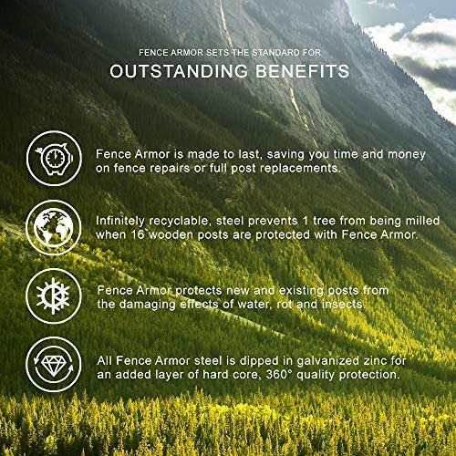 Prevent lawn equipment and weed whacker damage to your new or existing vinyl or wood fence, sign and mailbox posts. Fence Armor's patented full post protection is a 2-piece design. Made of strong, reliable, 22-Gauge galvanized steel with a durable powder coated finish. (Recommended fasteners: no 8 x 1 or no 8 x 1 in. stainless steel pan-head screws or pole barn screws).