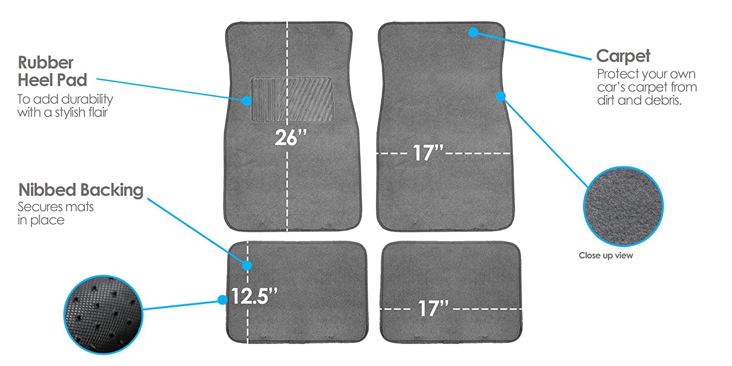 • Package Includes: 2 Front Mats and 2 Rear Floor Mats Nibbed backing secures mats in place