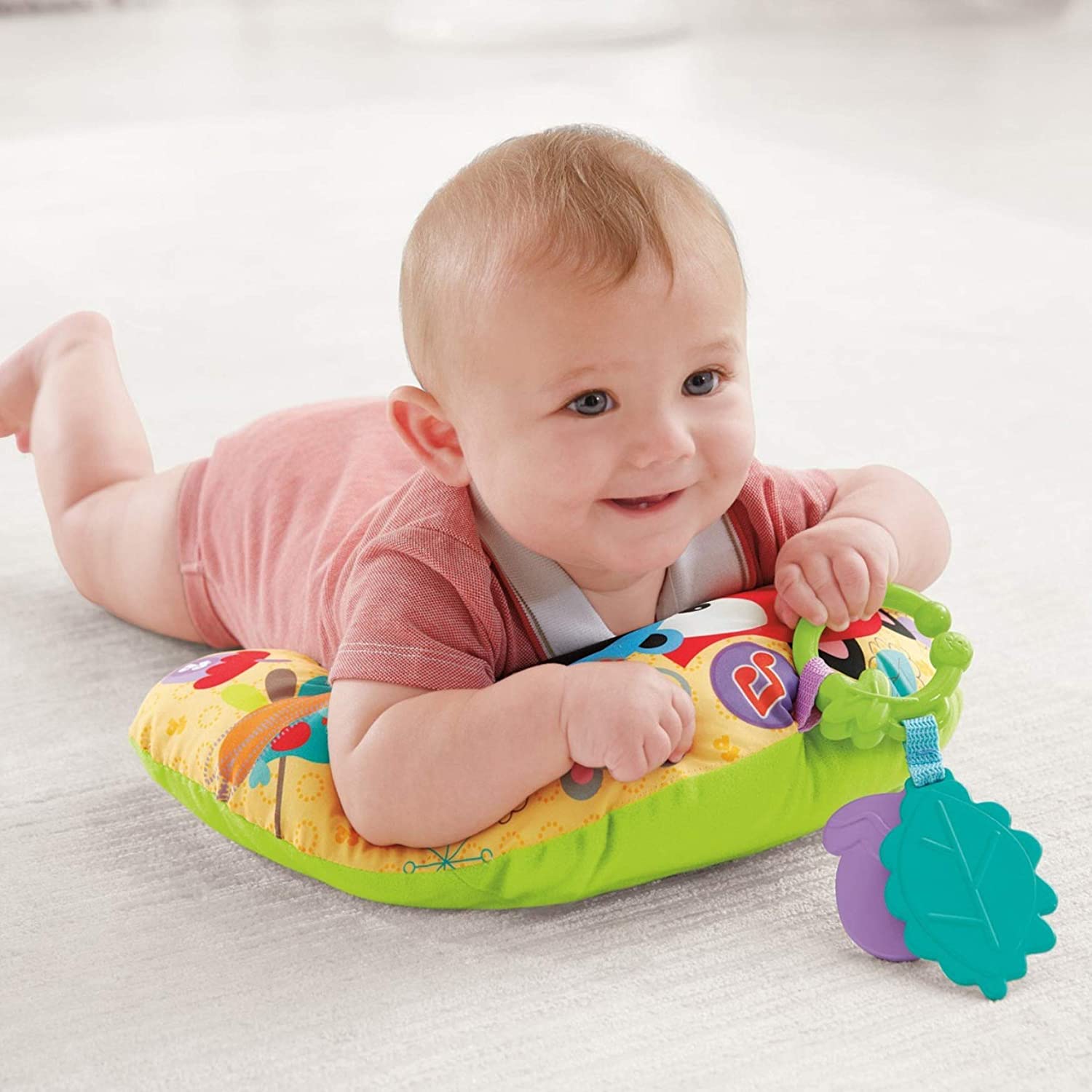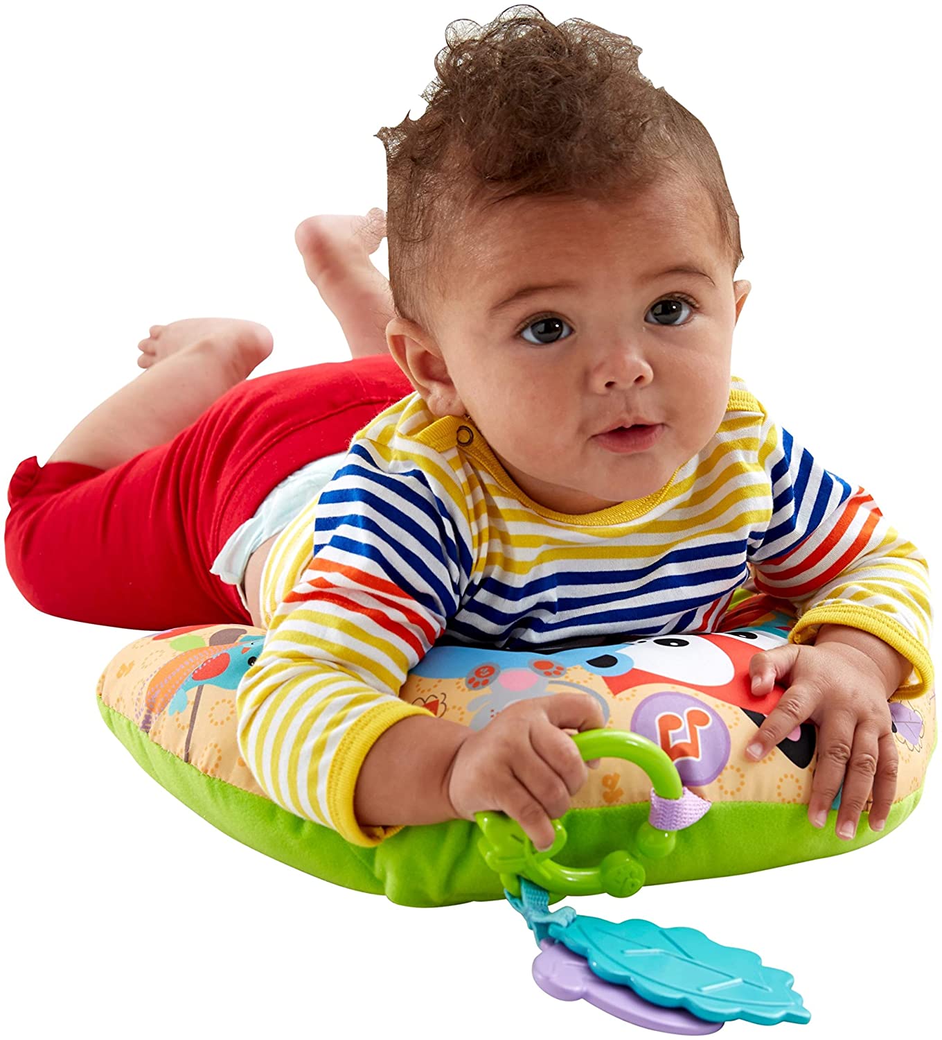- Encourages baby's gross motor skills as baby pushes up for tummy time