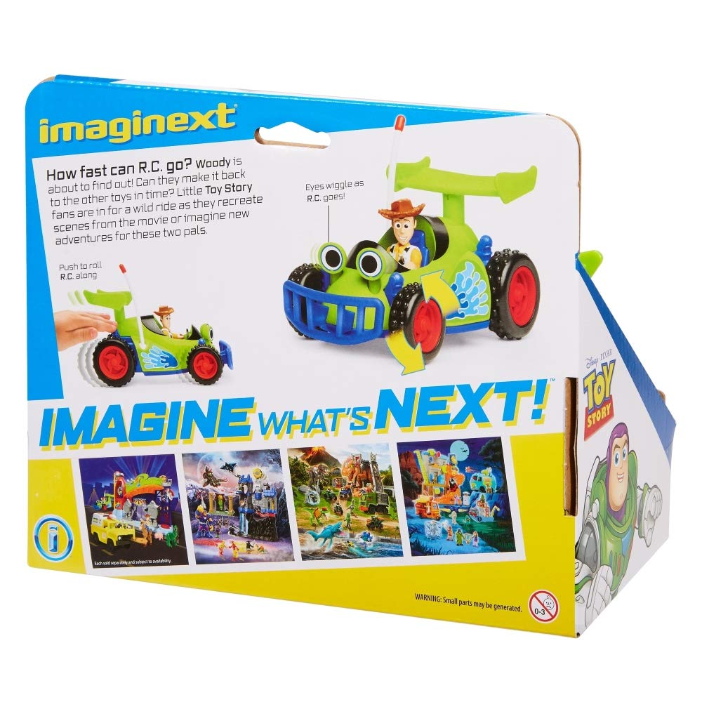 Kids can send Woody racing into exciting Disney/Pixar Toy Story adventures with this Imaginext pretend RC vehicle. As Woody "drives" along in the vehicle, the RC's eyes wiggle around! Can Woody escape Sid and save his friends in time? That's for your young adventurer to decide! Imaginext Imagine What's Next!