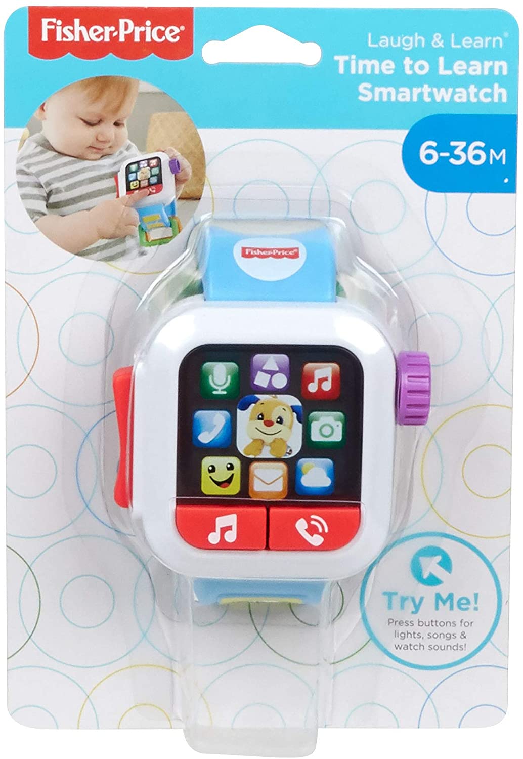 Let's get moving! Your busy baby can chat with Puppy, do some counting, and hear all about different colors and greetings with the Laugh & Learn Time to Learn Smartwatch. This pretend smartwatch looks just like the real thing, with a light-up screen, easy-grasp band, and lots of busy activities for your baby to explore. Where development comes into play Early Academics: Sung songs and phrases introduce your baby to colors and greetings. Fine Motor Skills: Busy activities like pressing the toggle switch, turning the dial, and pushing the buttons helps strengthen your baby's dexterity and hand-eye coordination. Imaginative Play: The realistic smartwatch design lets babies and toddlers pretend to be just like you.