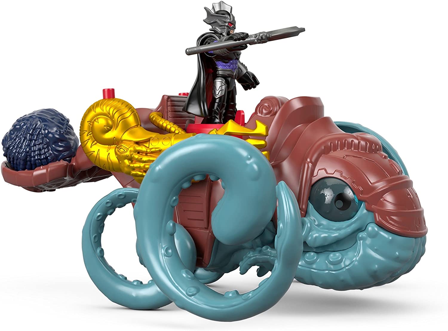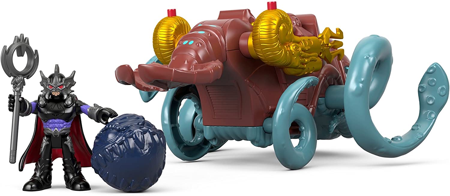 Aquaman's evil half-brother, Ocean Master, has come to claim the throne of Atlantis, and he's ready to fight for it. Send him rolling into action atop his fully loaded sea creature, which can launch boulders and tridents at the push of a button. Young Super Heroes will love creating awesome undersea adventures with this action-Packed set. Fisher-Price Imaginext Imagine What's Next!