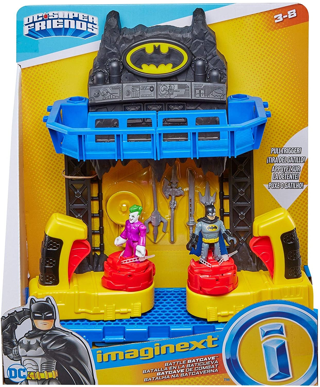 Anything can happen in the Battle Batcave . It's here that Batman and his fellow Justice League members train for battle—and face-off against their biggest nemeses. With awesome spinning and bumper-crashing actions, the Batcave is the perfect setting for your young Super Hero to wage epic battles with their favorite DC Super Friends Super Heroes and Super-Villains! Fisher-Price Imaginext Imagine What's Next!