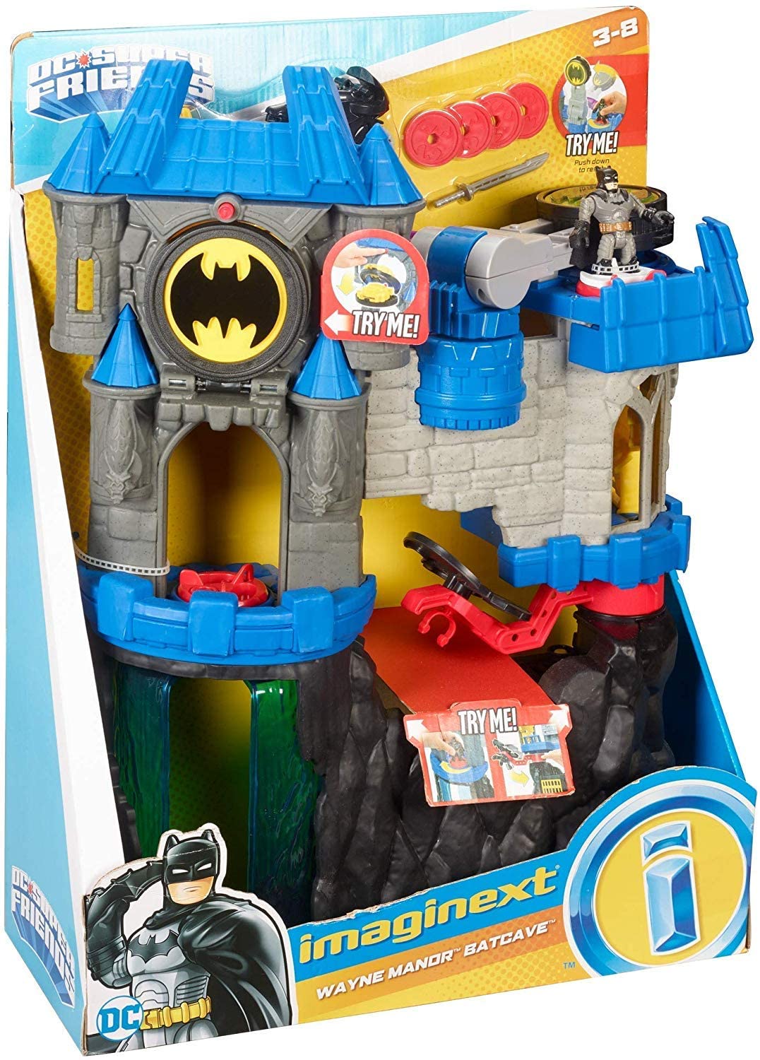 With this Imaginext DC Super Friends Batcave, young Super Heroes can take the action from Wayne Manor to the secret lair below (and back again), creating their own exciting Gotham City adventures with Batman. Send Super-Villains running for cover with a secret disk launcher, soar into action on the glider, take to the streets on the Batcycle, and more! Imaginext Imagine What's Next!