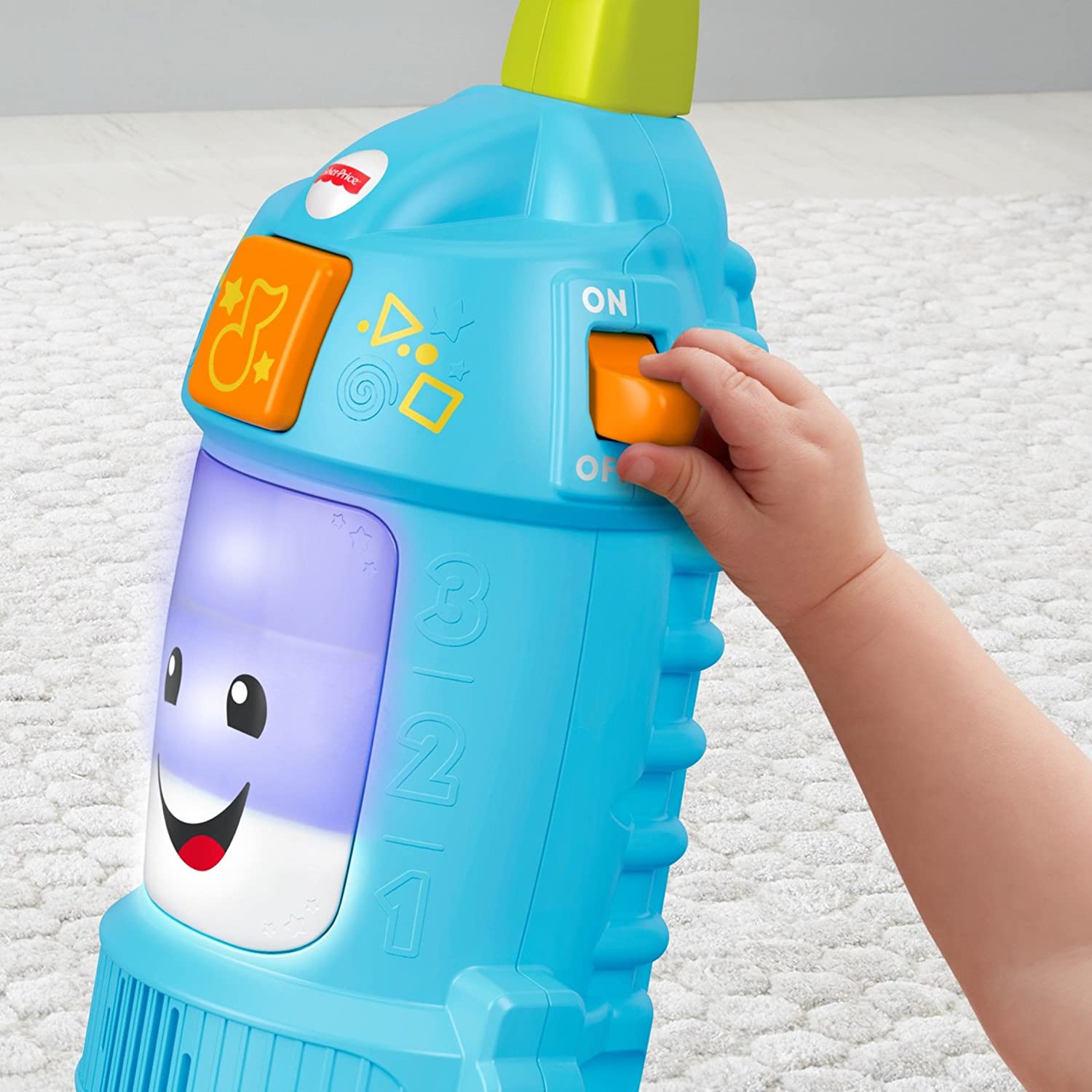 Clean up time has never been more fun than with the Laugh & Learn Light-up Learning Vacuum from Fisher-Price! When your toddler pushes the toy vacuum along, bright lights and learning songs and phrases will introduce colors, counting, and more. Flip the "power" switch up and actual vacuum sounds let your tiny helper really get into the role play fun! Where development comes into play Academics: Playful songs and phrases introduce counting, colors, shapes, opposites, and more. Gross Motor: As your baby pushes the vacuum here, there, and everywhere, they're developing important gross motor skills like balance and coordination. Creativity & Imagination: The realistic design and sound effects encourages early role play and imaginative fun as your little one pretends to clean house.