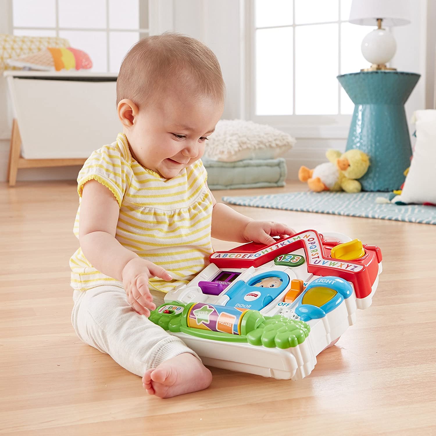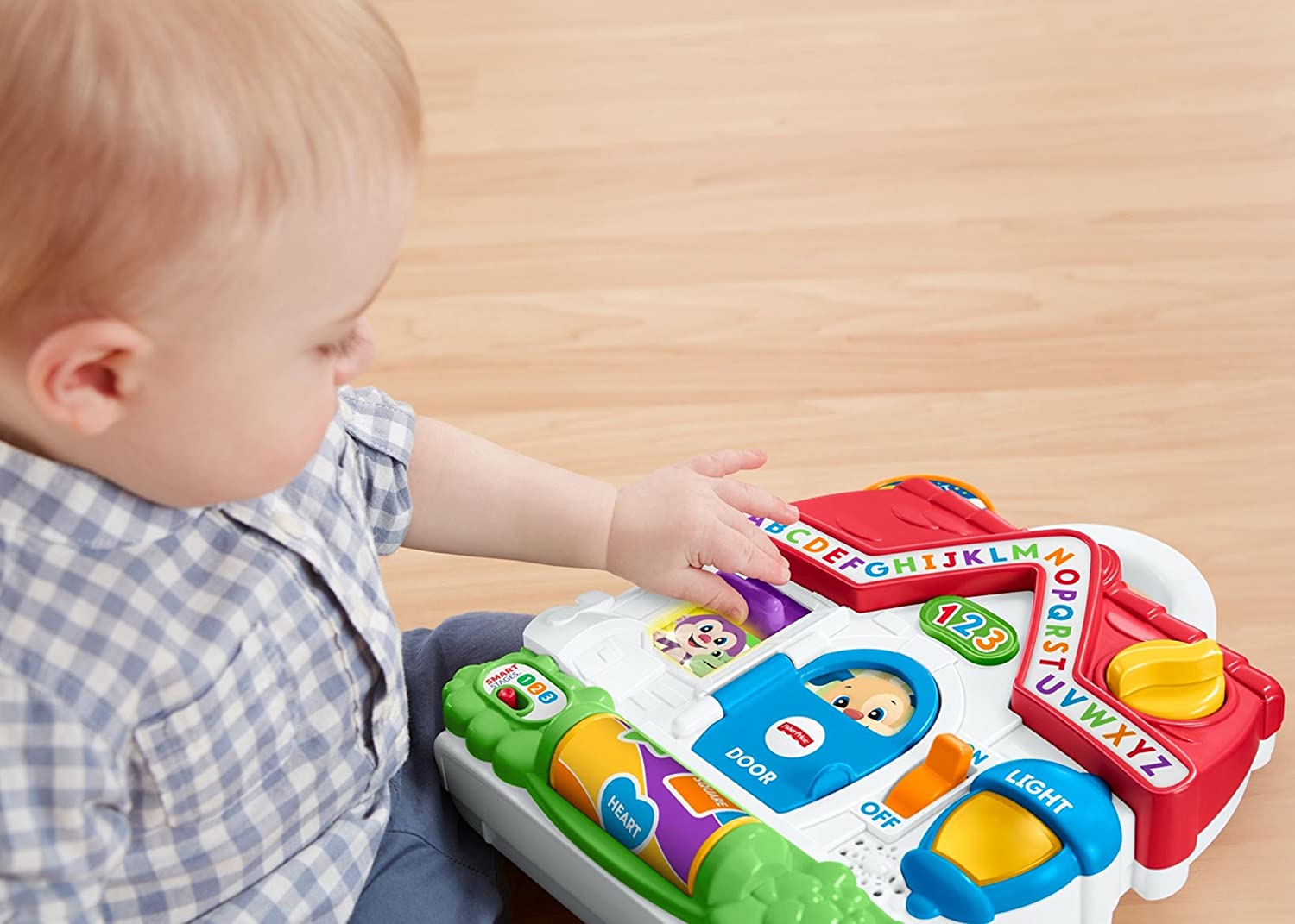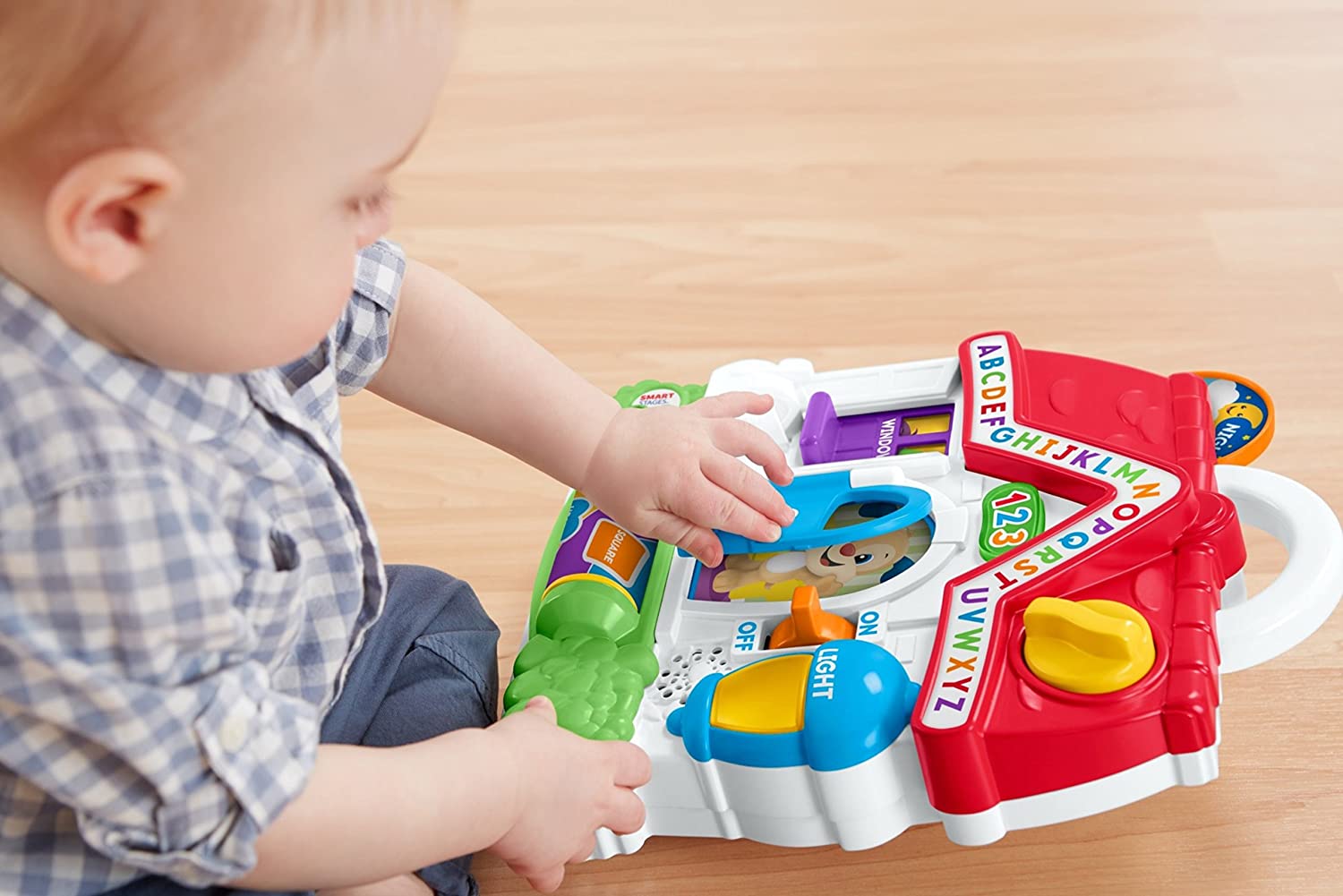 ​Welcome to Puppy's house, where hands-on play keeps little ones busy all day! As your baby bats, slides, turns and flips the activations around the house, Puppy will share playful songs, sounds and phrases that introduce the alphabet, counting, and more. Plus, with three Smart Stages levels, the learning fun changes along with your baby's age and stage! Where development comes into play Academics: Puppy helps little ones learn all about the alphabet, counting, shapes, Spanish, and more with playful songs and phrases. Fine Motor: All that sliding, rolling, flipping, and turning helps develop your baby's dexterity and hand-eye coordination. Curiosity & Wonder: As babies discover how to activate the music and lights, they see that their actions can make fun things happen—hey, that's cause & effect!