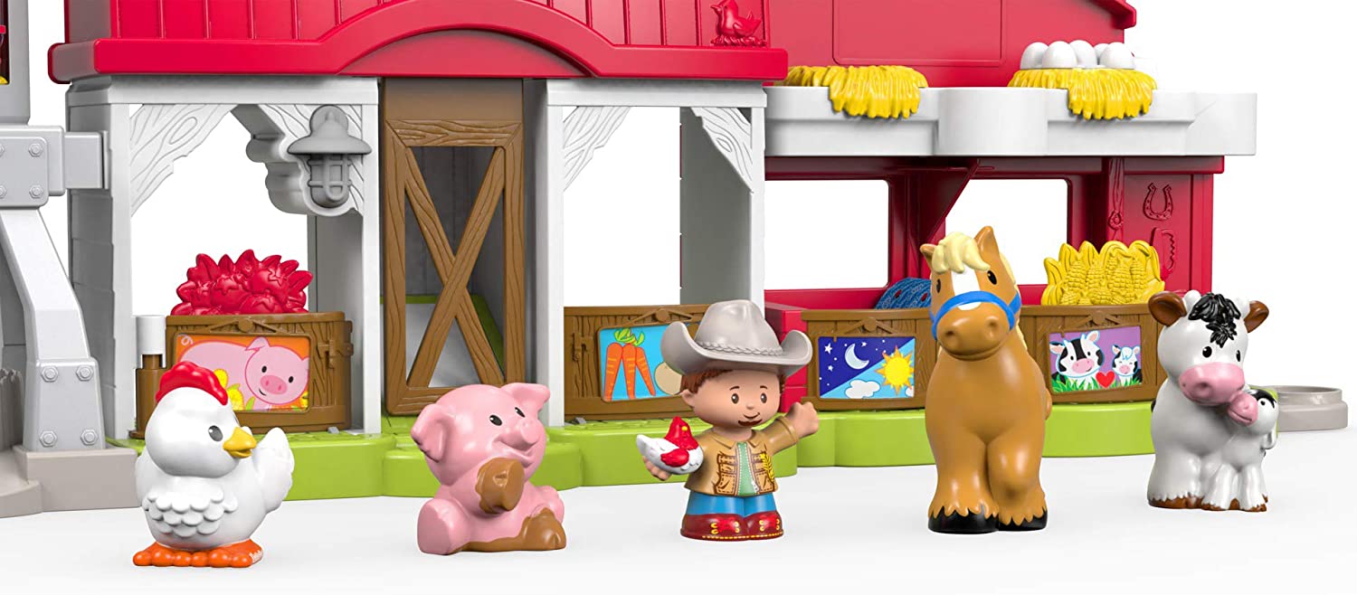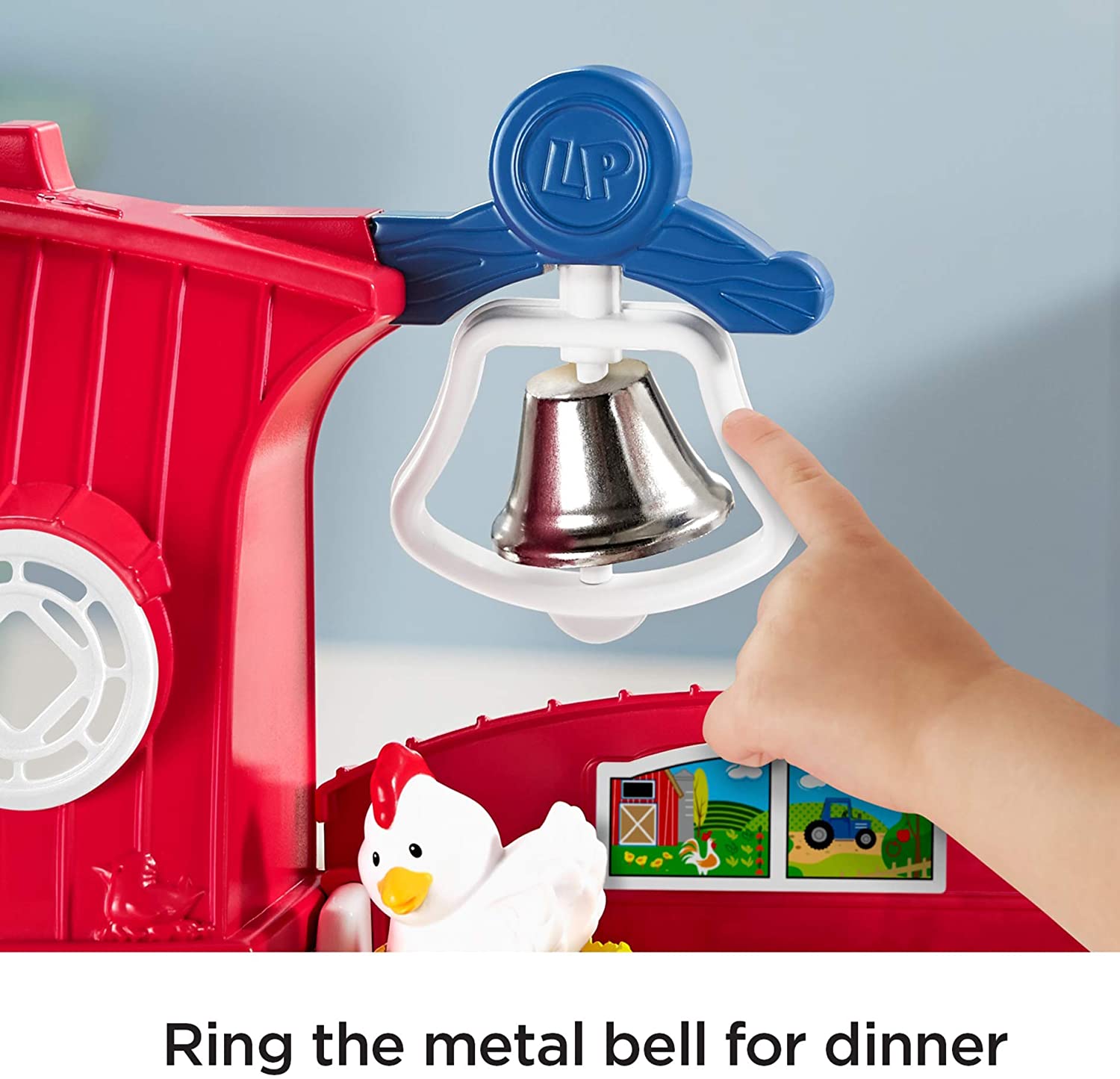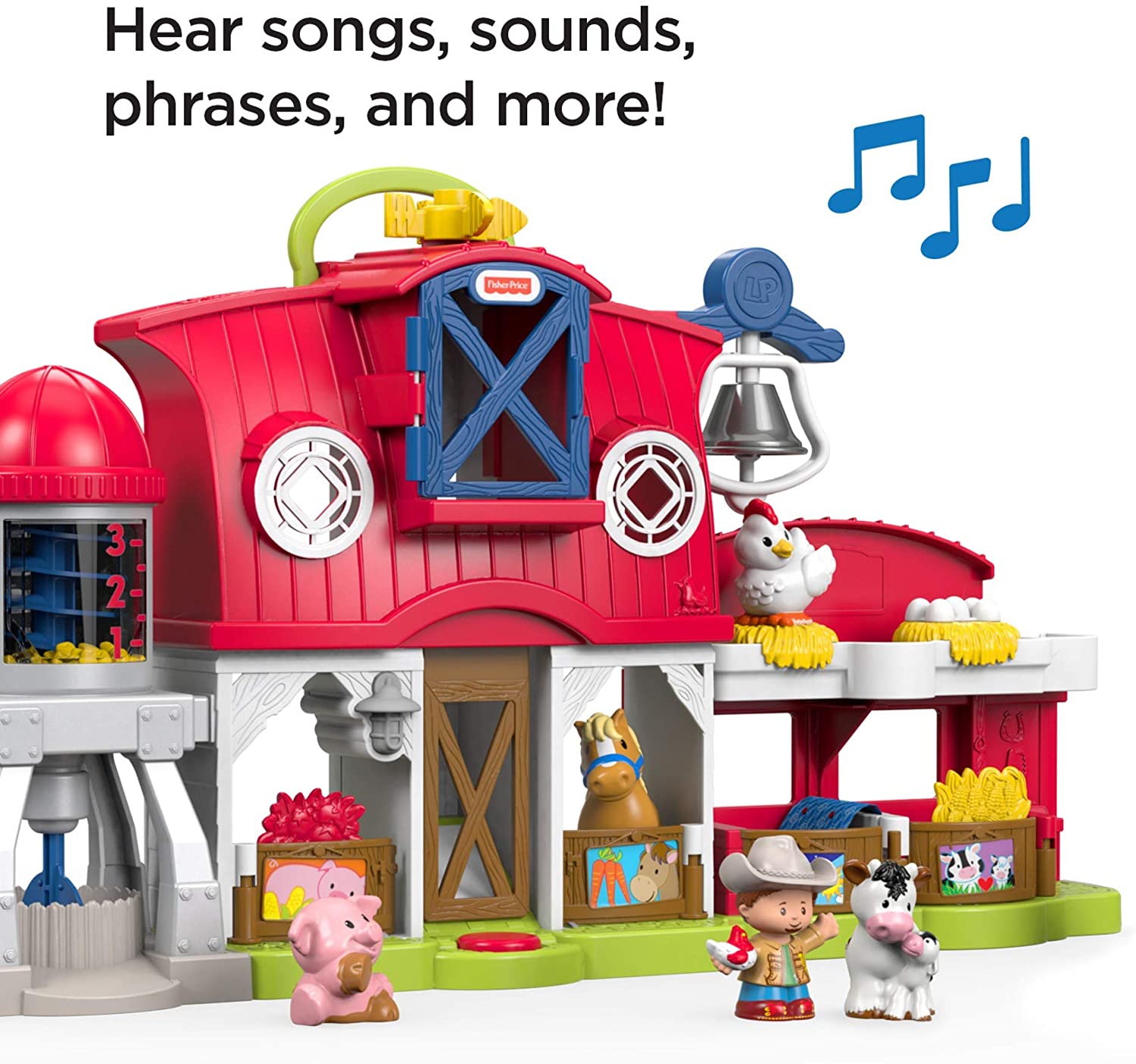 Farmer jed works very hard to care for all his animals on the little people caring for animals farm, and he would love some help from your tiny farmer. Toddlers will love learning how to take care of all their animal friends, from feeding the chickens to tucking in the horse with a soft blanket, and exploring all the exciting activities on this farm. Get the fun started by pressing the discovery button to pop open the stall doors and hear fun songs and phrases. or open up the hayloft for drop-through fun that activates more sounds and phrases! then little farmers can press the discovery button to "hatch" the chicks, turn the silo to rotate the corn crop (pop pop!), and so much more! Ding ding—ring the bell to let all the animals know it's dinnertime, then feed some of the corn to the chickens! this activity-packed little people playset is more than a farm—it's a home for all your toddler's new friends. Where development comes into play sensory: the farm offers tons of sensory-stimulating fun for little ones—from the bright colors, songs & sounds, to the variety of materials for their tiny hands to explore! curiosity & wonder: as toddlers discover all the ways to interact with the farm, like pressing the discovery button to hear fun sounds and see the stall doors pop open, they'll see how their actions can make fun things happen great intro to cause & effect! emotions & self-expression: as kids pretend to feed & care for the farm animals, they're beginning to learn what it feels like to take care of someone else.