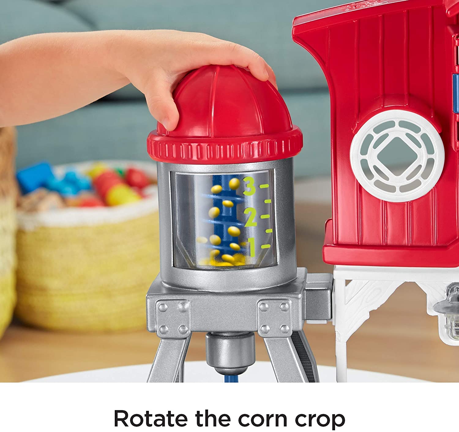 - Turn the Silo to rotate the corn Crop and hear fun corn-popping sounds