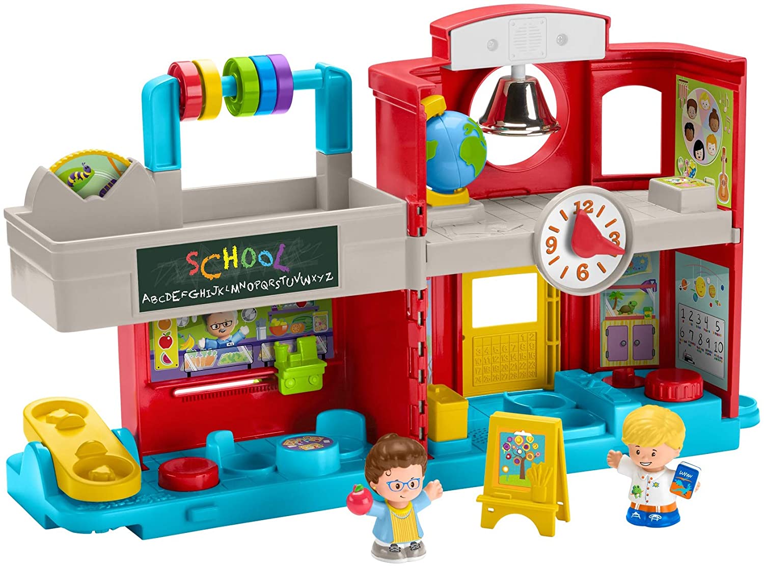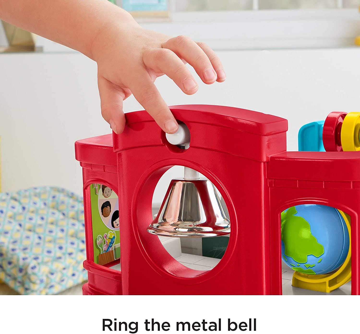 - Working teeter-totter, spinning globe, real metal bell & more hands-on play