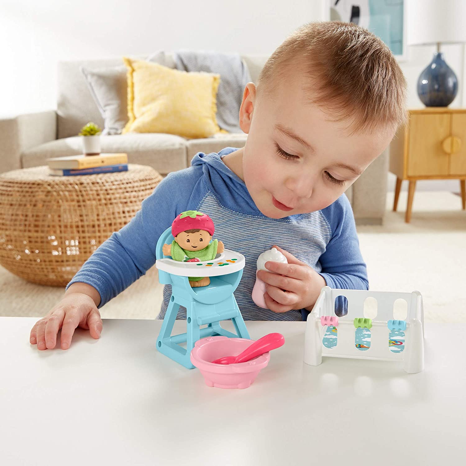- Toddlers can feed and care for their baby figure with this Little People play set